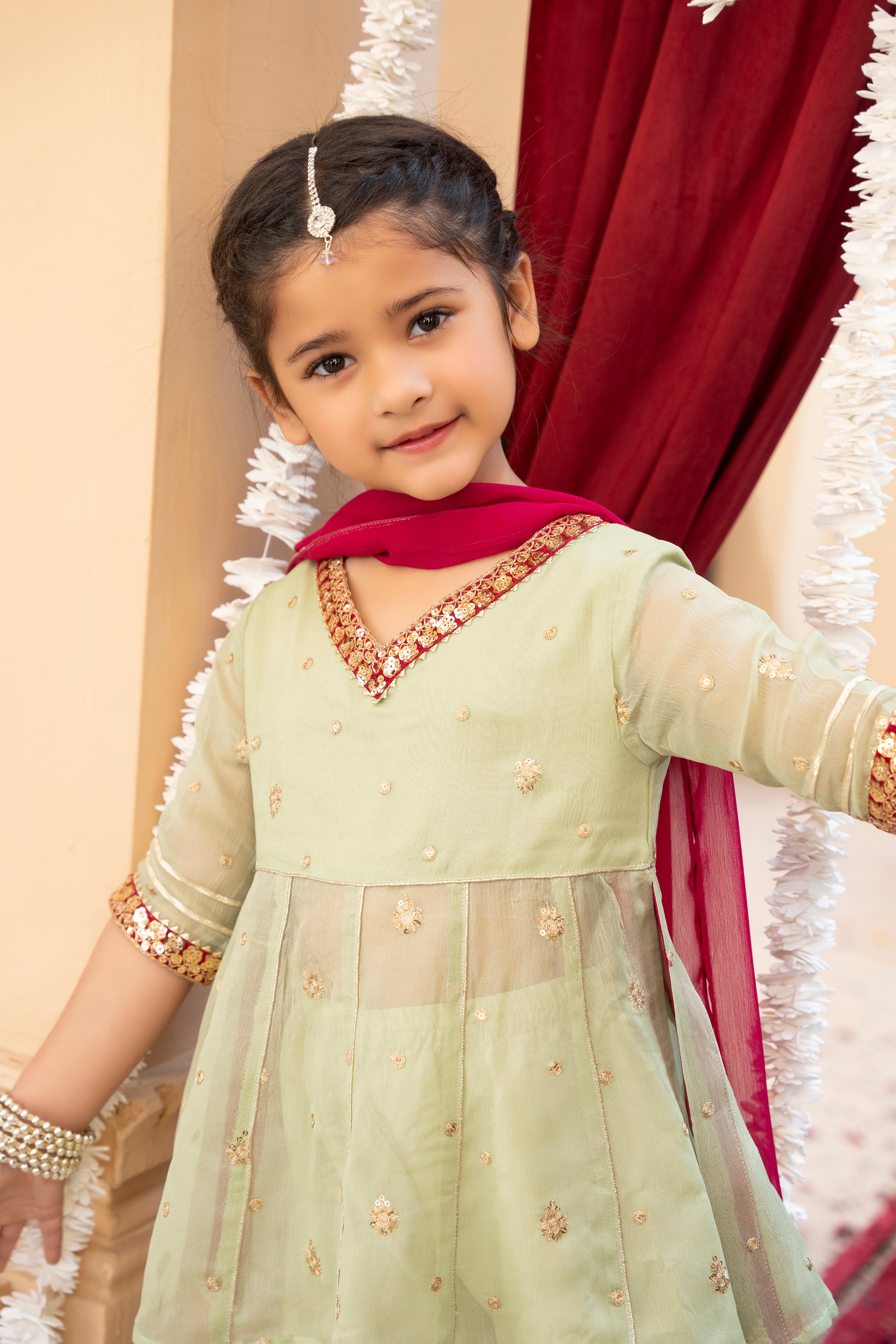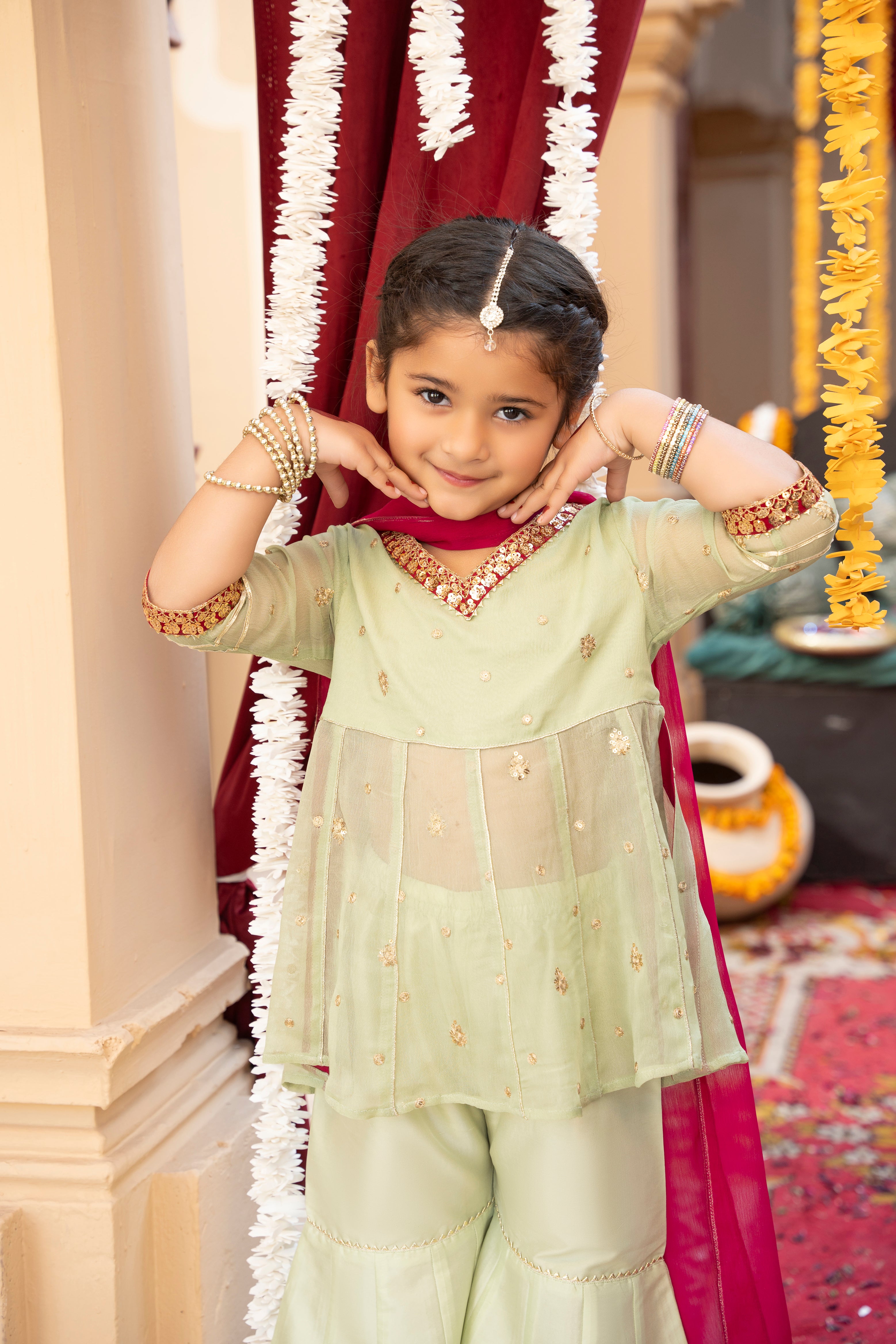 This chic and modern 3-piece toddler outfit is designed to bring a perfect mix of tradition and trend to any special occasion. Crafted from luxurious fabrics and enhanced with intricate details, this ensemble offers both elegance and comfort for your toddler to look and feel her best.