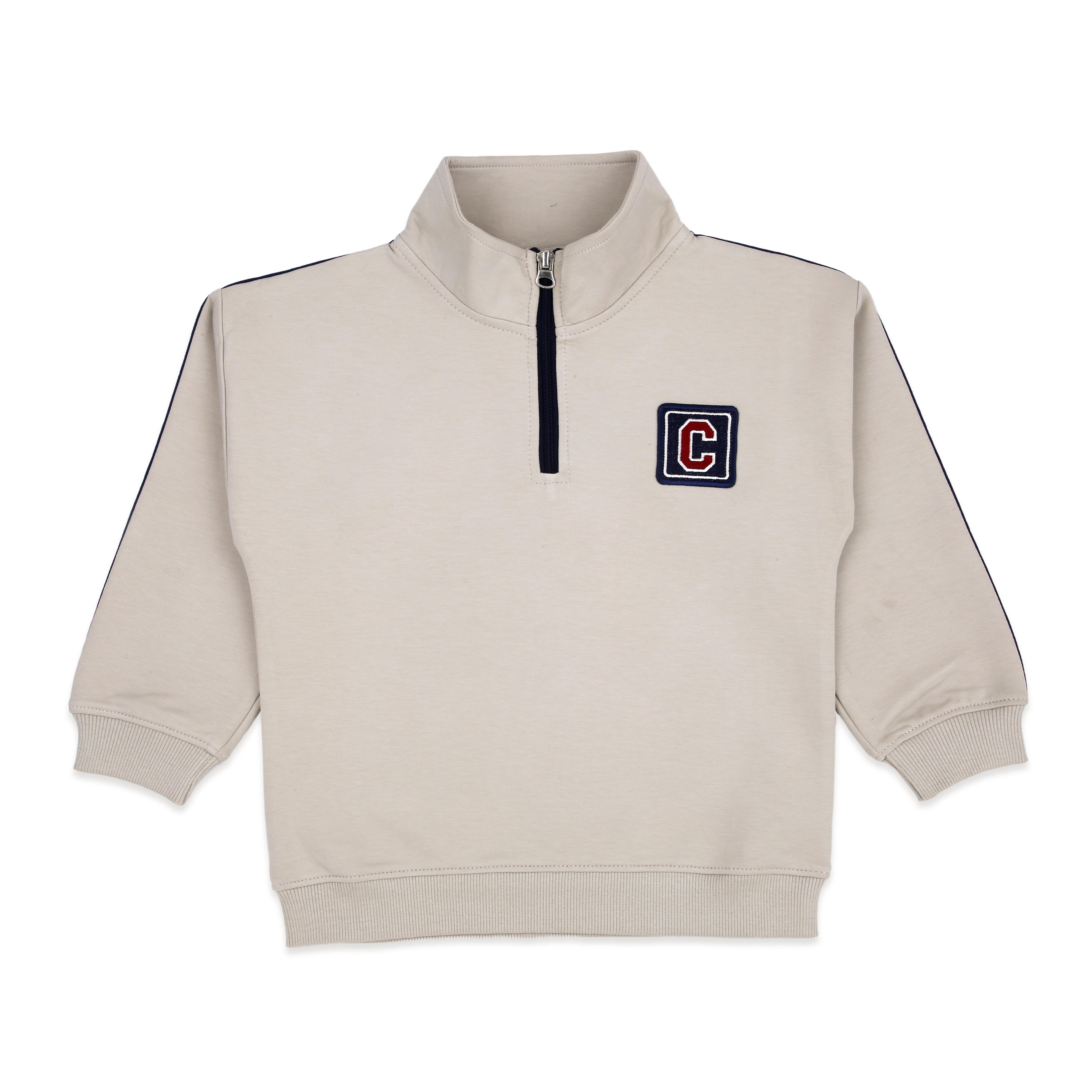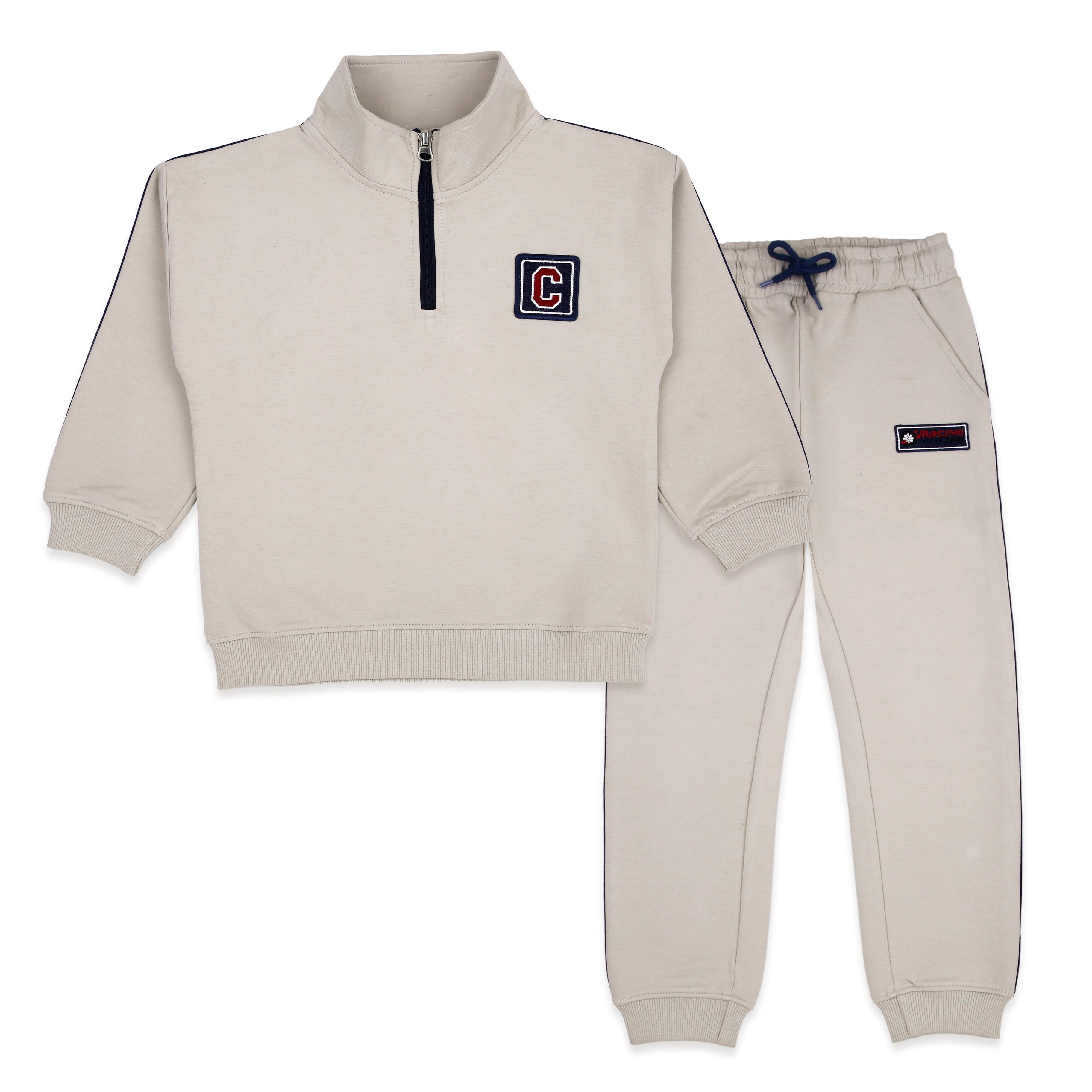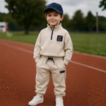 Your little champ will be ready to run, play, and explore in this stylish and sporty co-ord set. The oversized turtle-neck sweatshirt features a high-quality quarter zip and varsity-style "C" patch, giving major cool-kid vibes. Crafted from a premium blended interlock fabric with a smooth, stretchable finish inspired by performance sportswear (like Adidas), this set is built for durability and active wear.