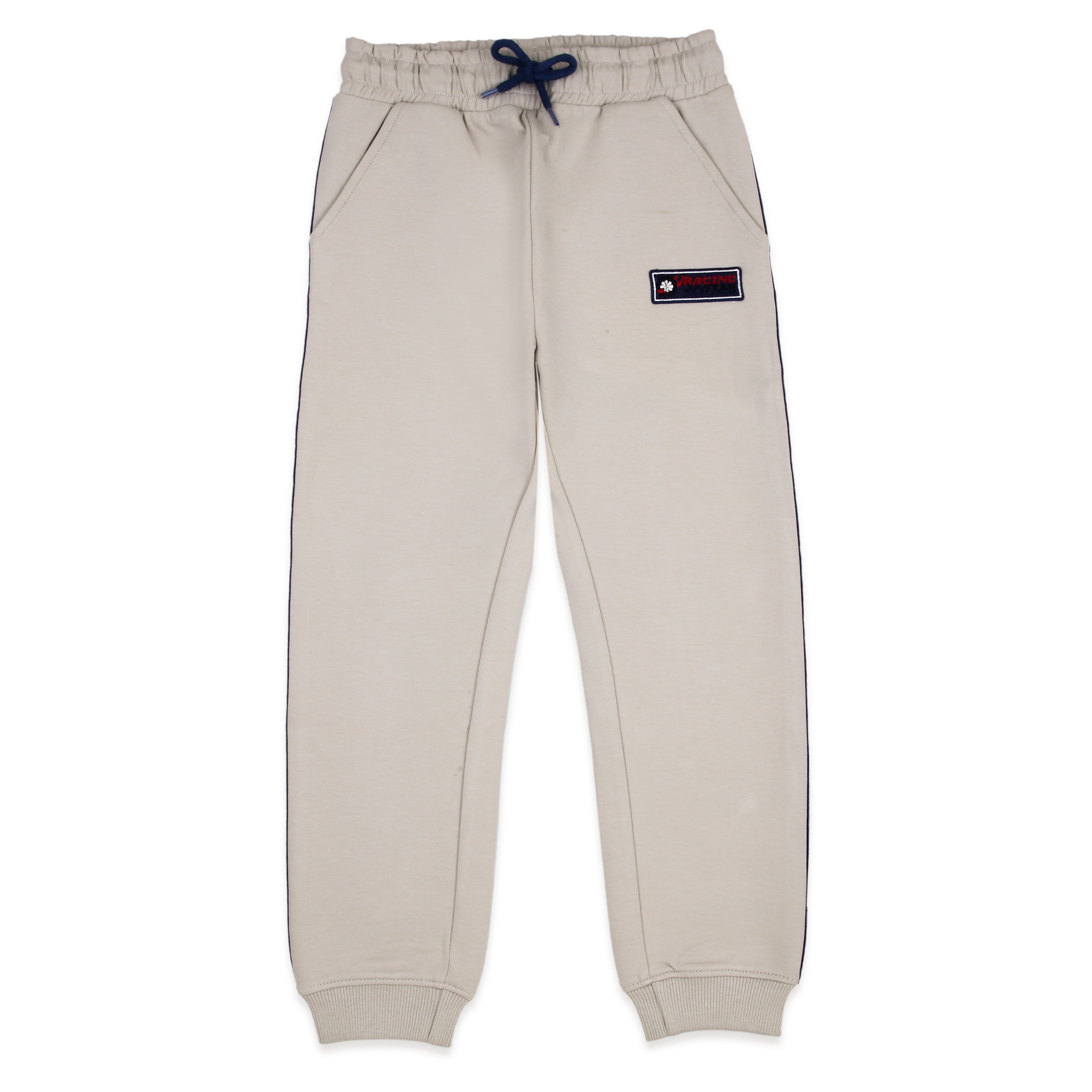 The coordinating jogger pants feature a soft elasticated waist with contrast drawstrings, ribbed cuffs, and a matching patch detail on the pocket for a polished look. Perfect for winter days at school, park or just lounging in cozy comfort.