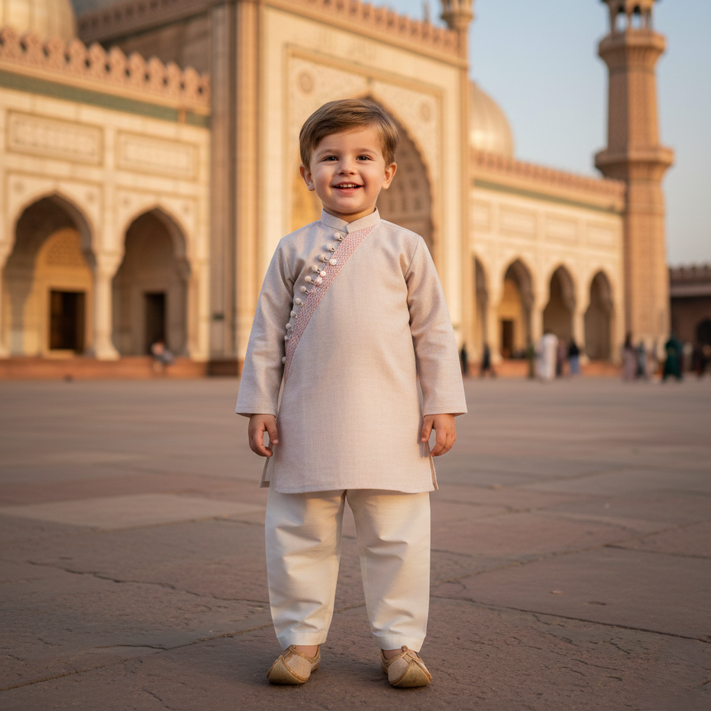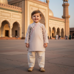 Introducing our Oyster - 2 Piece Set, an exclusive soft pink kurta paired with off-white shalwar. The kameez is designed with loop buttons and minimal embroidery for a sophisticated touch. The neck cut is inspired from Afghani Kurtas. Elevate your young one's wardrobe with this stylish and versatile addition. Perfect for any occasion.