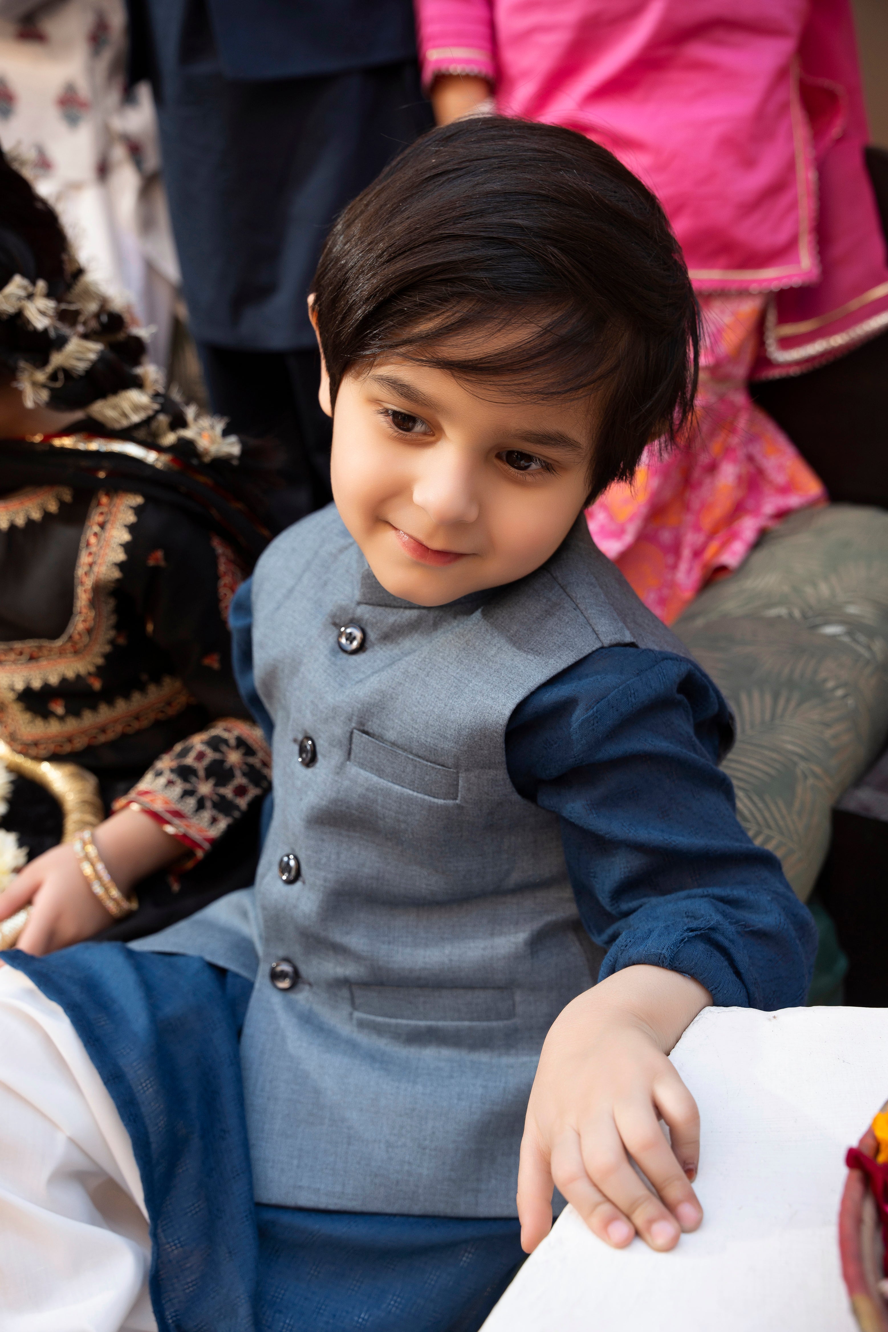 Elevate your toddler boy’s style with this sleek waistcoat . Designed for both comfort and charm, this waistcoat adds a unique touch to any outfit, making it perfect for special occasions or family gatherings.