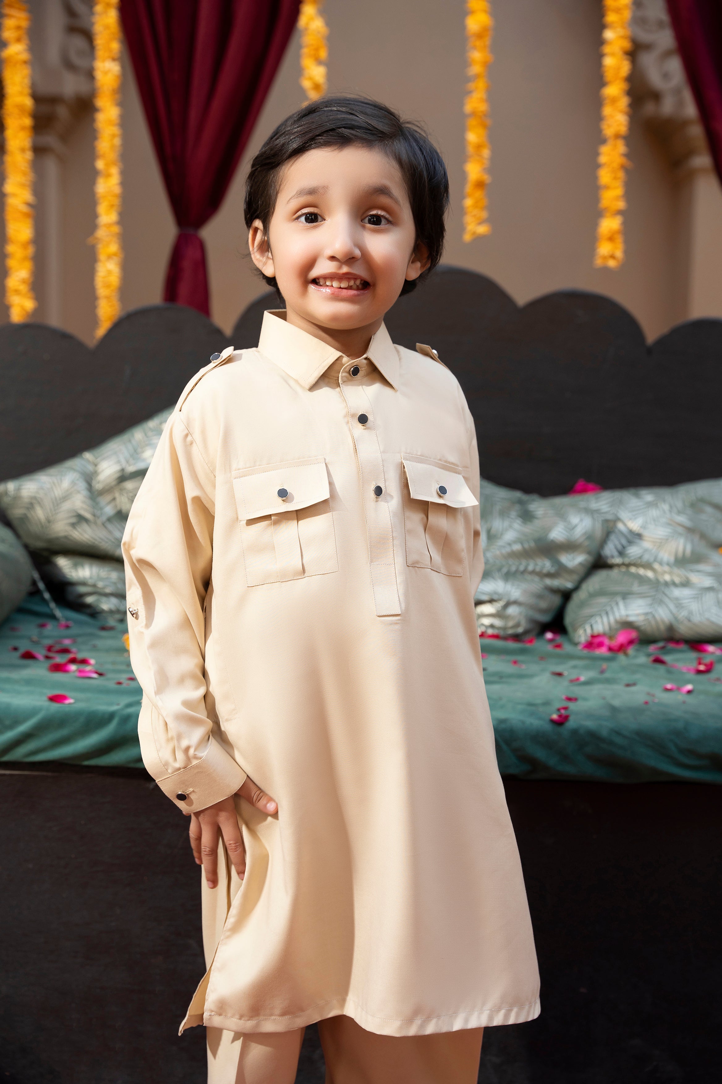 Elevate your little one's festive look with our Classic Cream Toddler Shalwar Kurta — a perfect blend of tradition, style, and comfort. Crafted from premium blended wash n wear fabric, this 2-piece set ensures your child stays cool, crisp, and comfortable throughout the day.