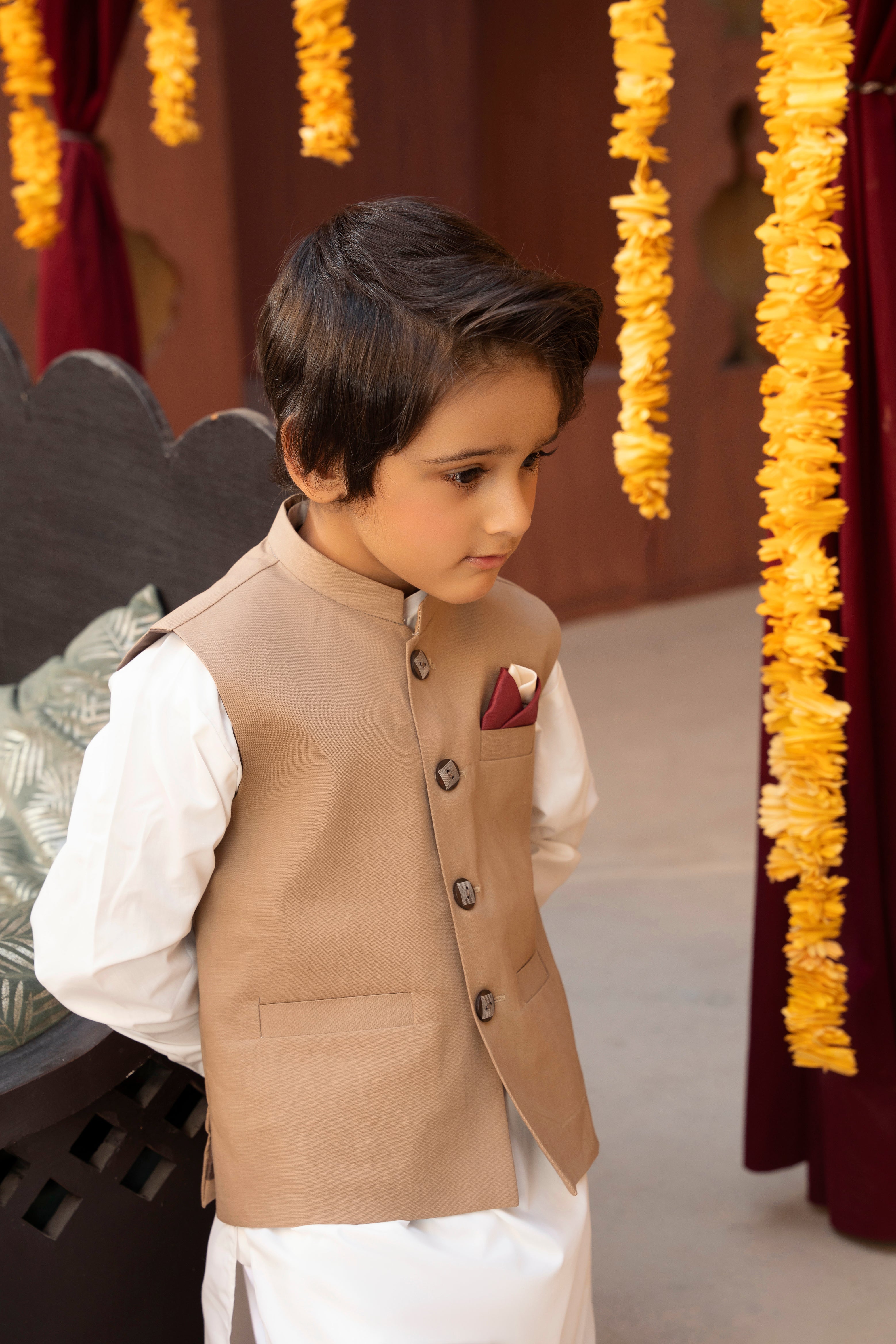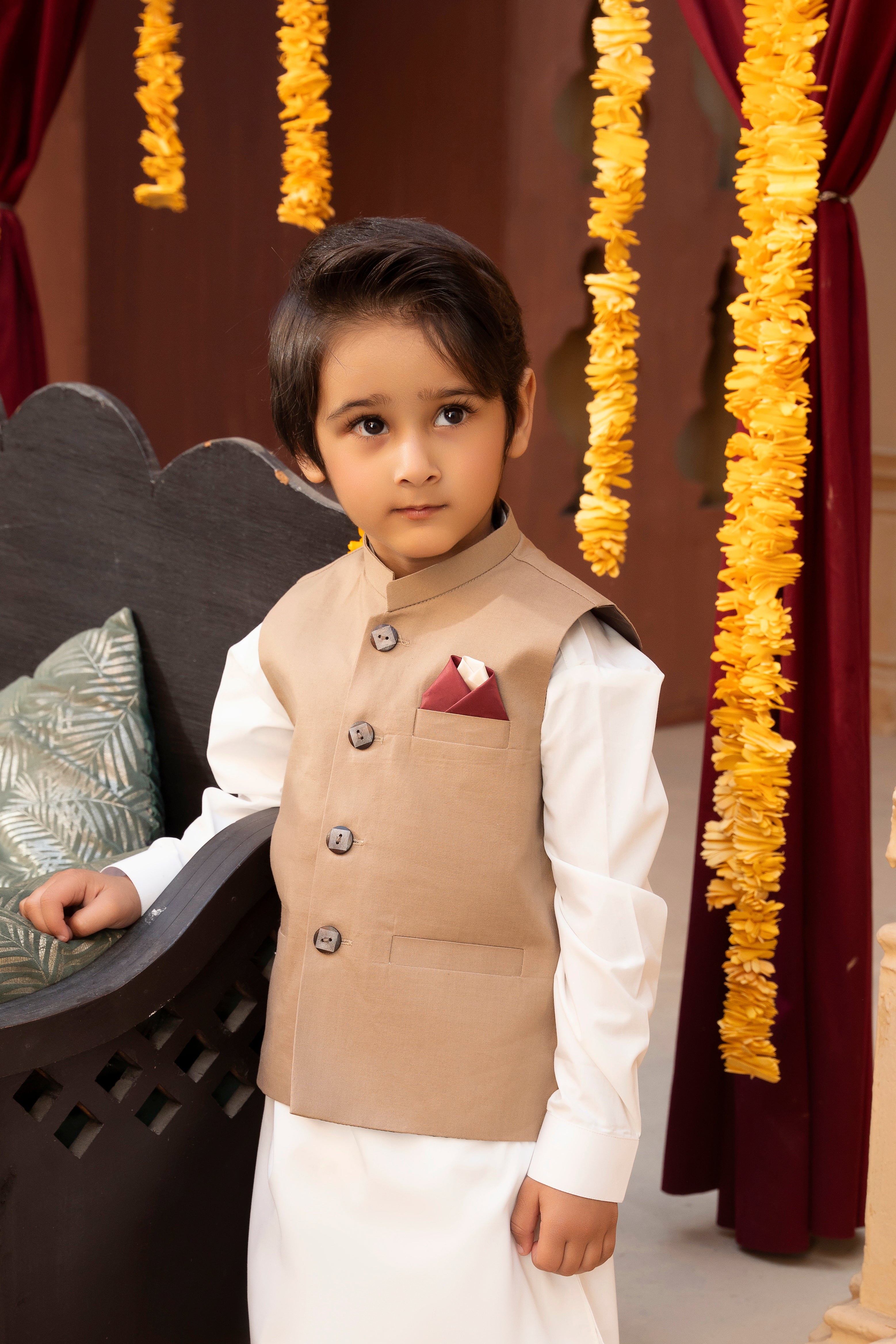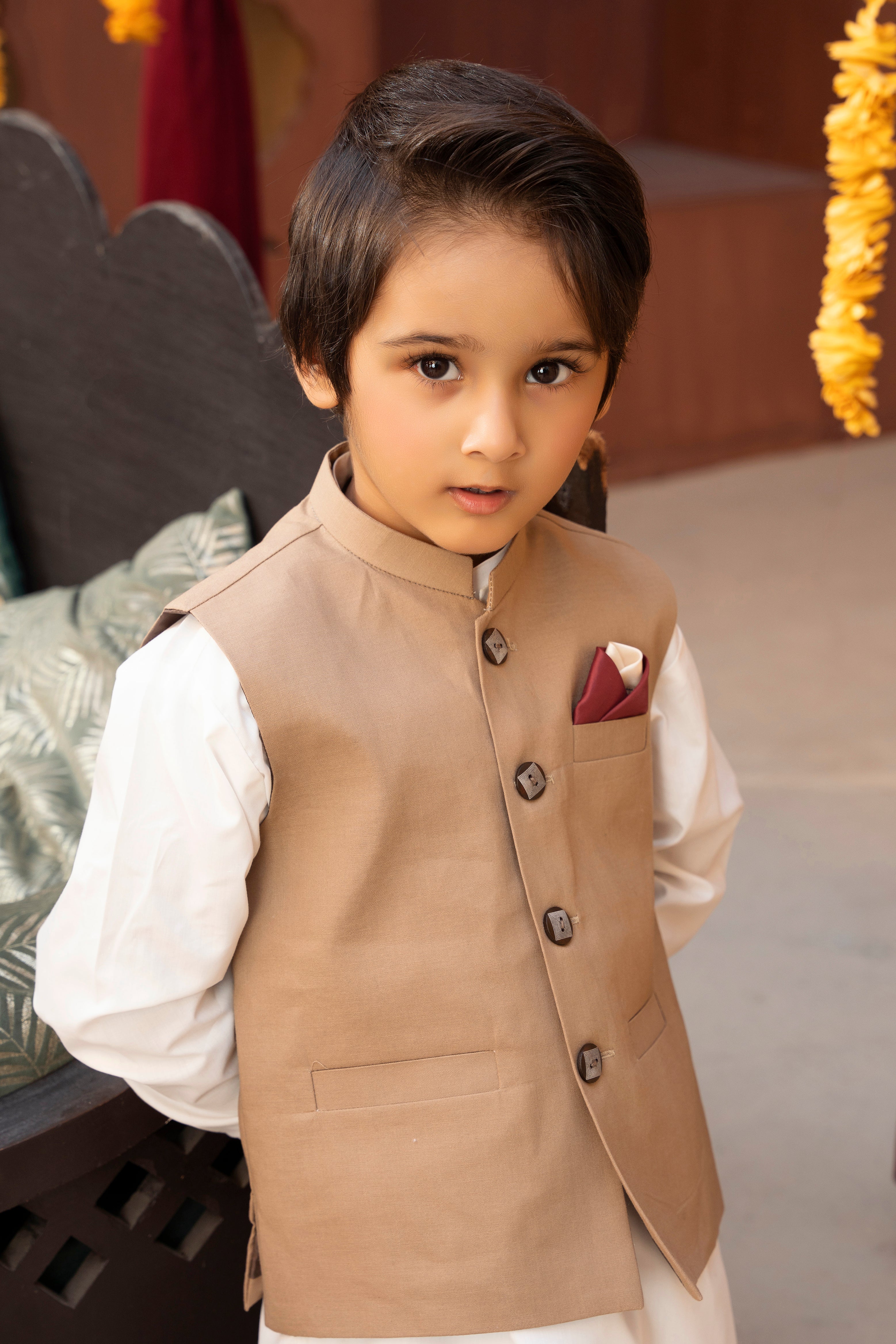 Elevate your toddler boy’s style with this sleek waistcoat . Designed for both comfort and charm, this waistcoat adds a unique touch to any outfit, making it perfect for special occasions or family gatherings.
