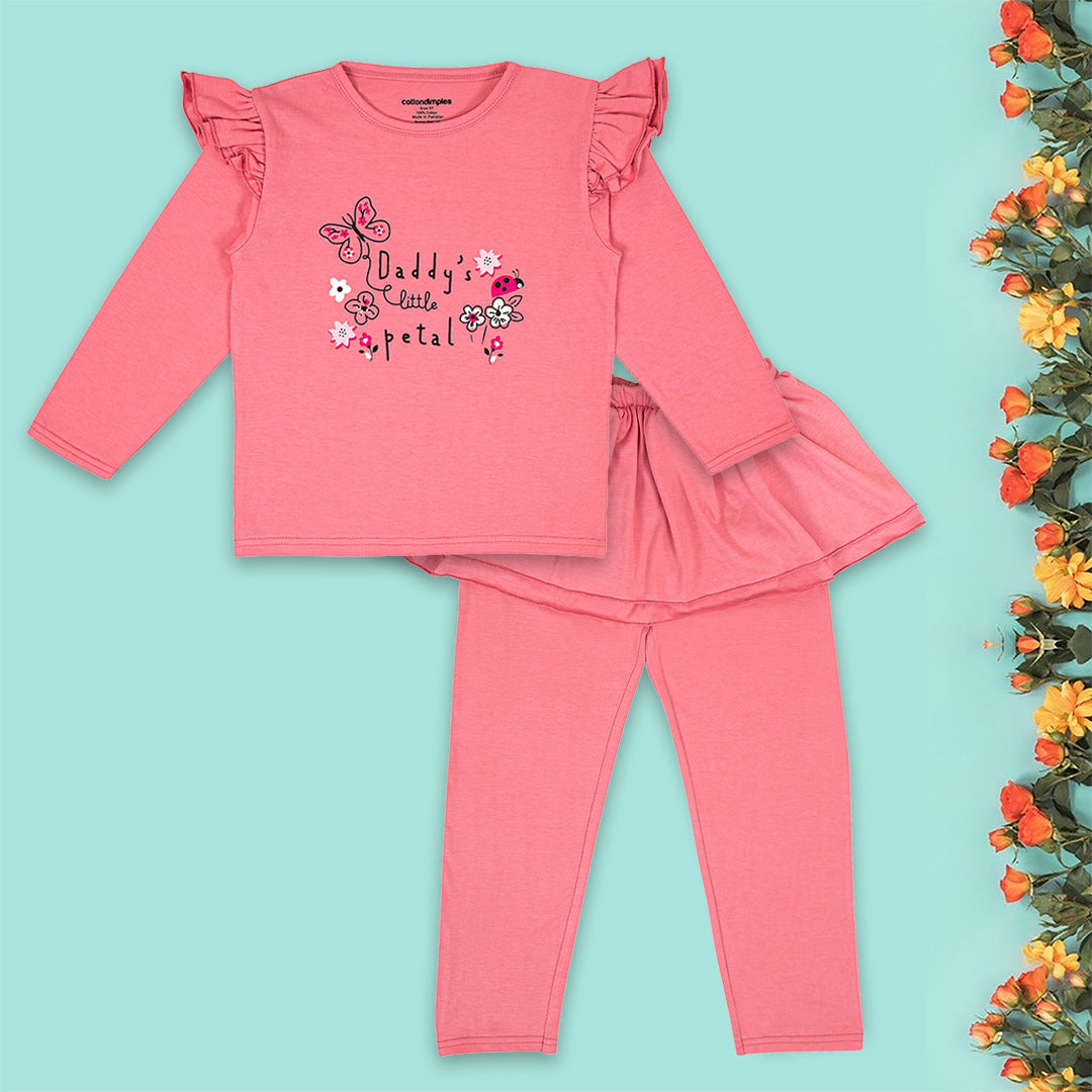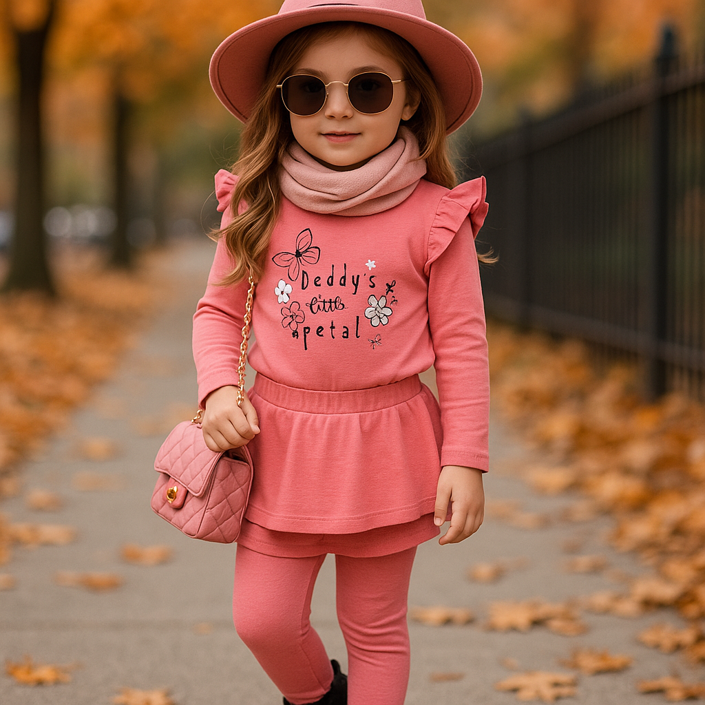 Pants with Attached Skirt: The pants come with a whimsical skirt attached, combining the comfort of pants with the playful flair of a skirt. Your little one will look adorable while enjoying freedom of movement.