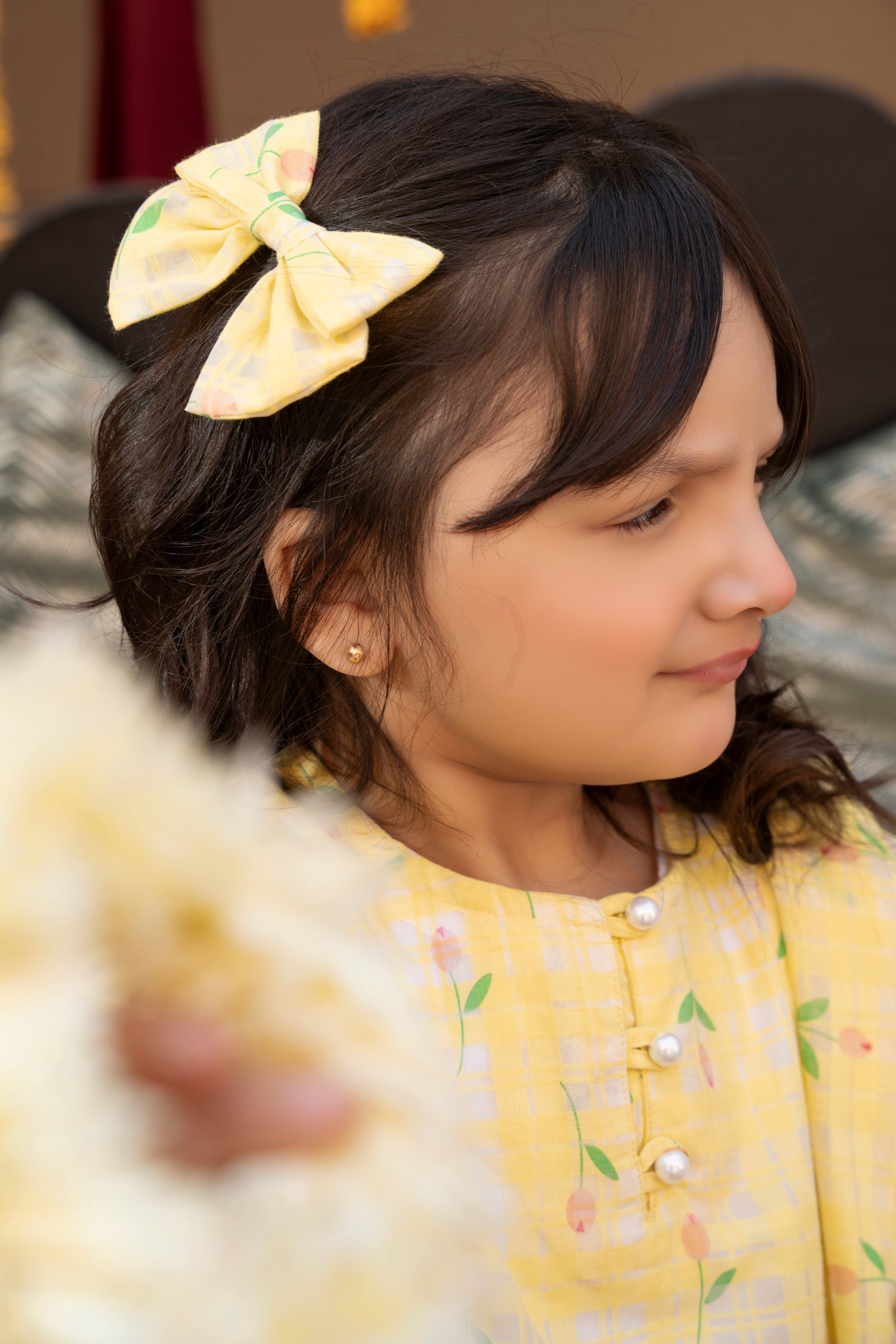 Styled with a cute matching bow and an elegant dupatta, this ensemble is both playful and chic. The straight pants are made from a soft fabric, offering a comfortable and flattering fit.