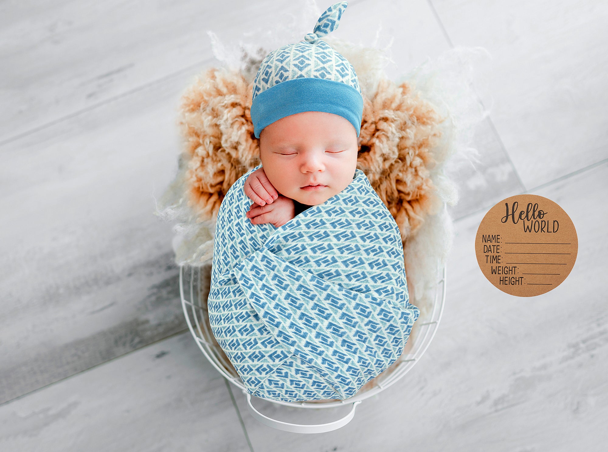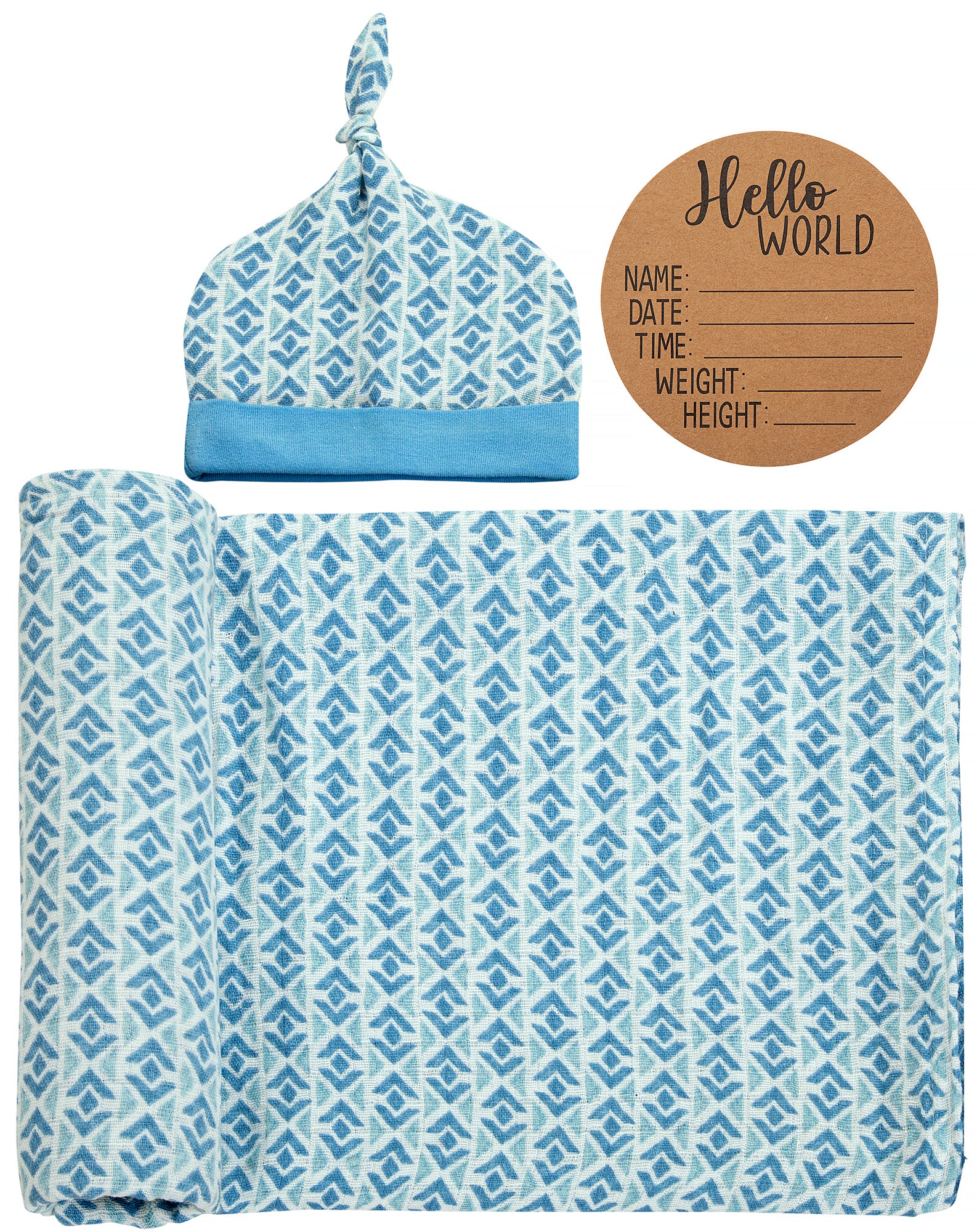 BABY BIRTH ANNOUNCEMENT SWADDLE SET - Blue Pottery