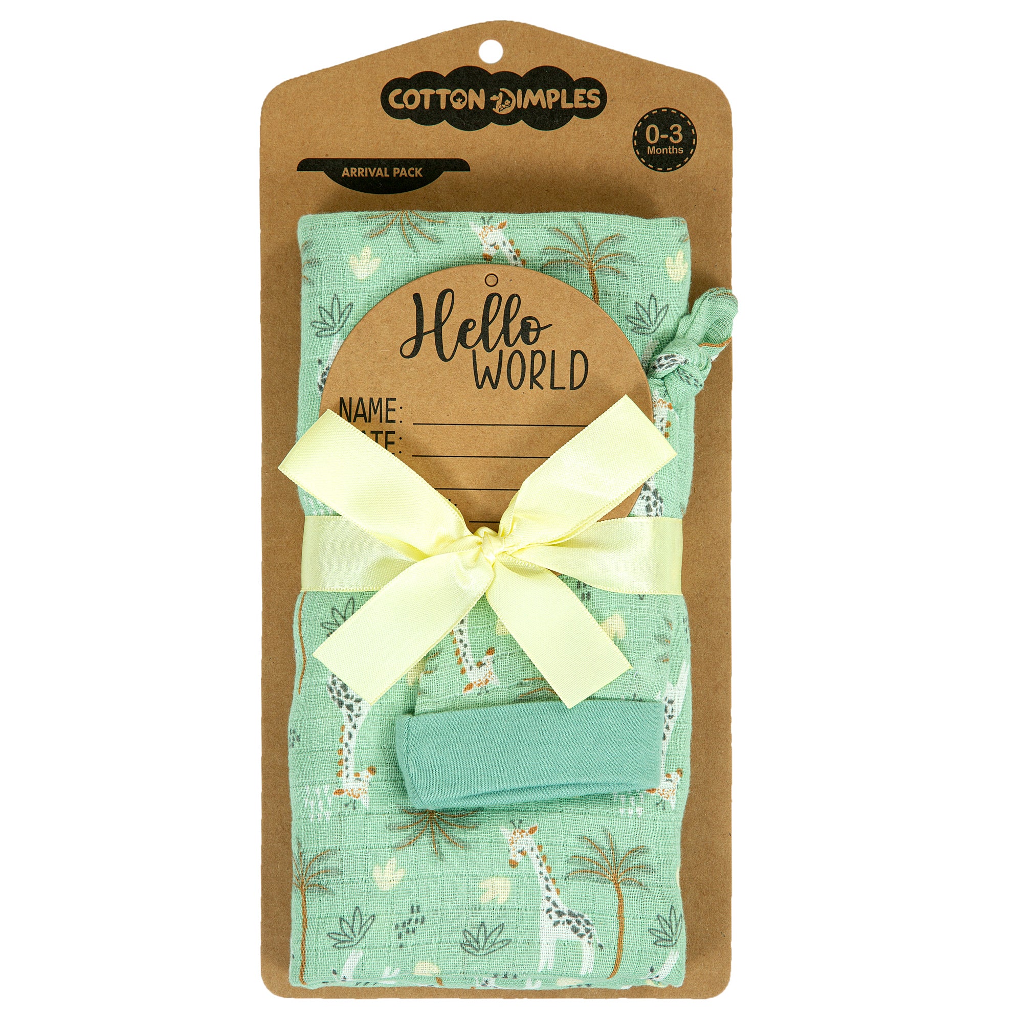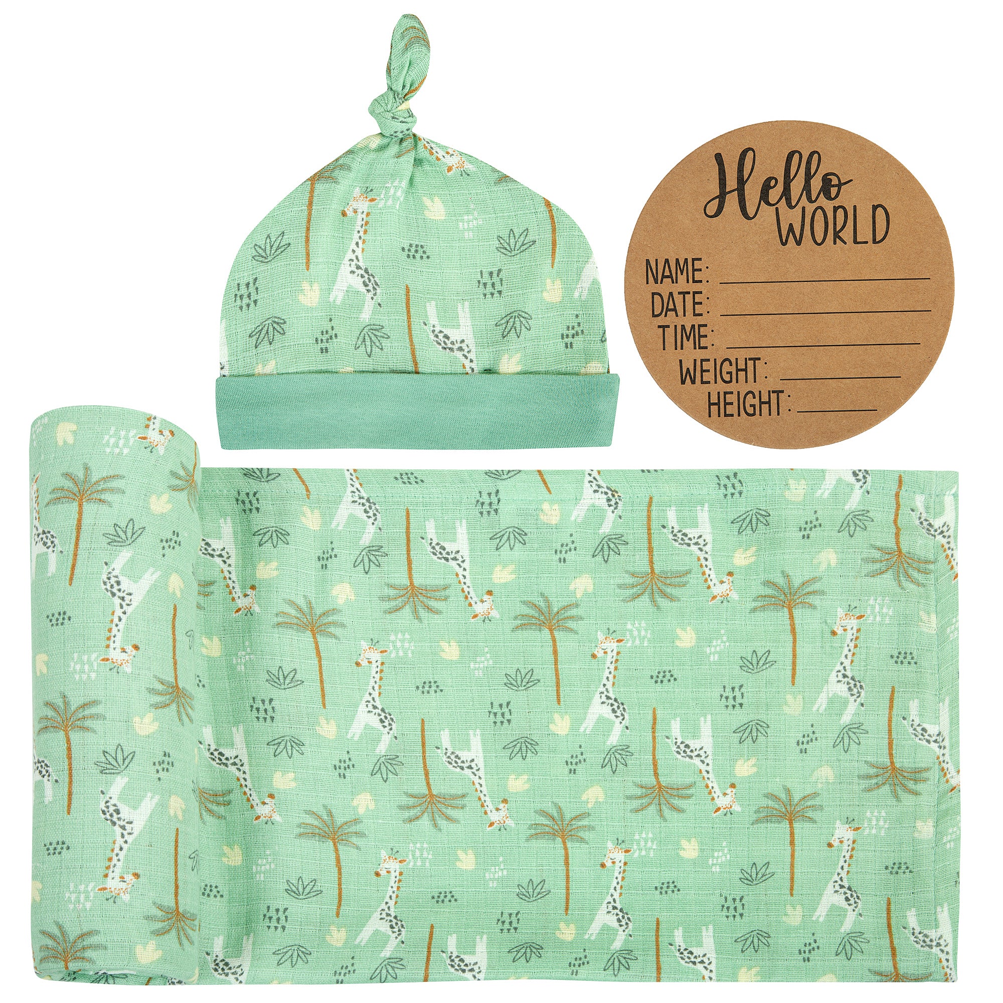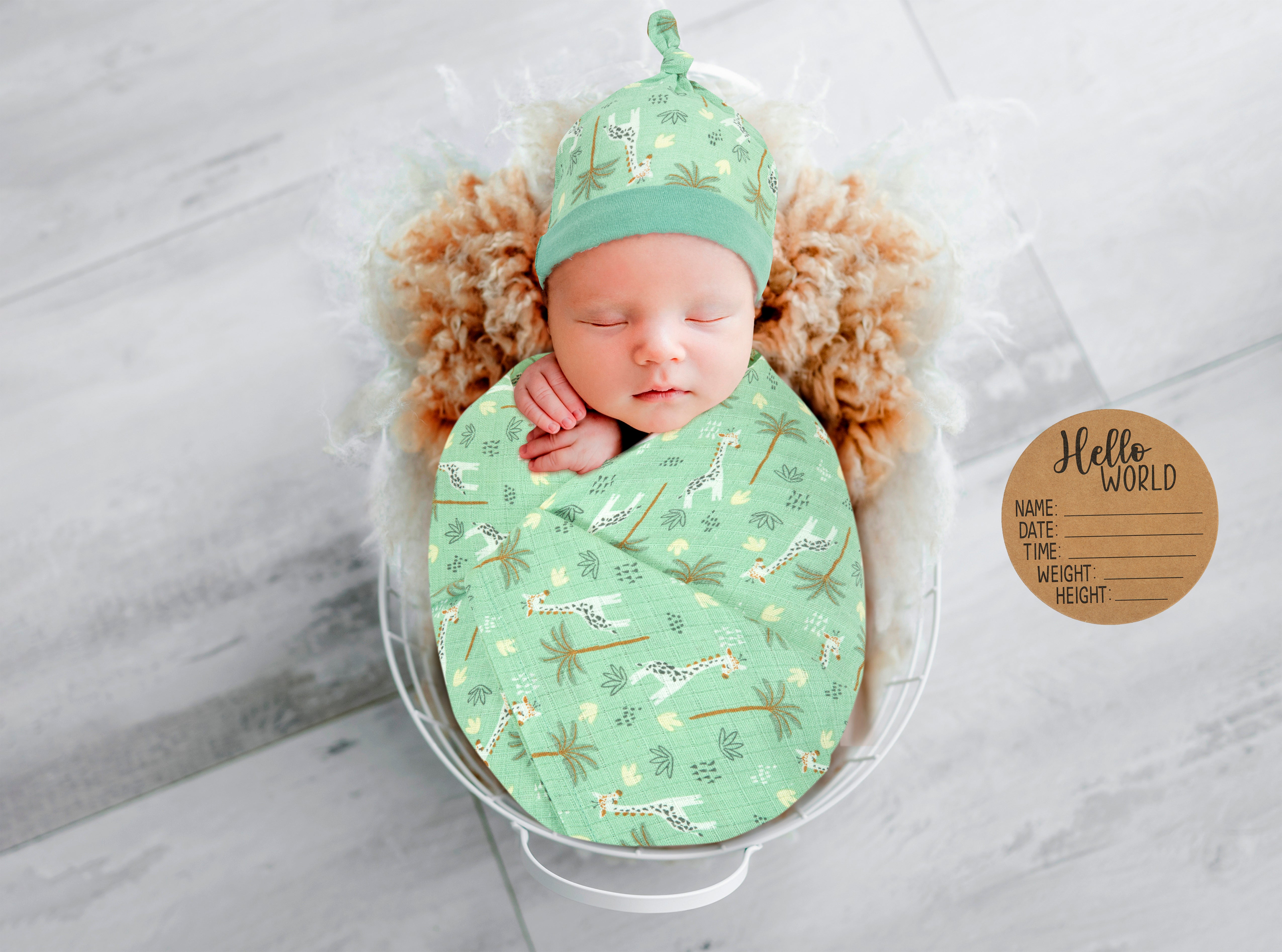 BABY BIRTH ANNOUNCEMENT SWADDLE SET - Giraffe
