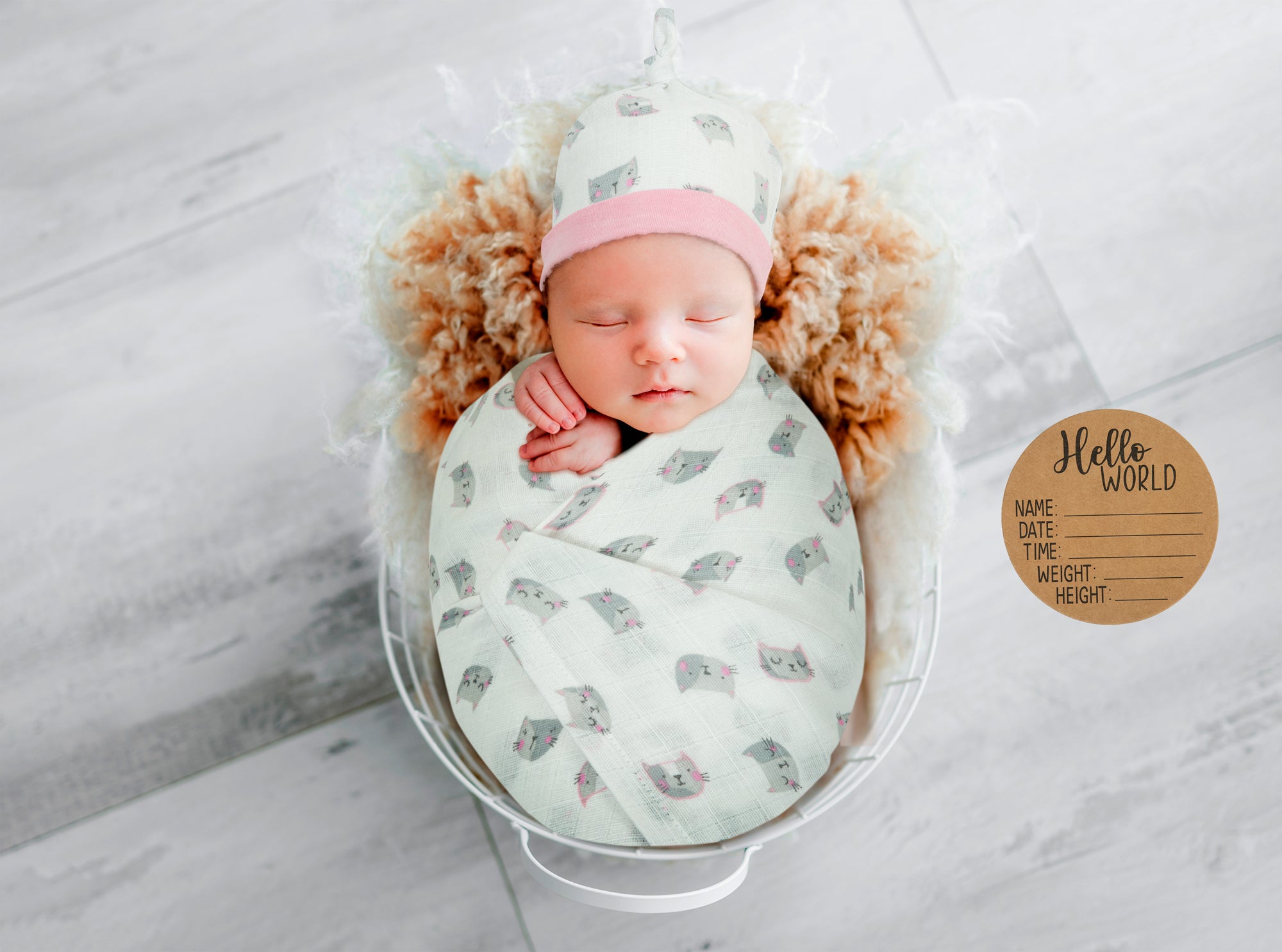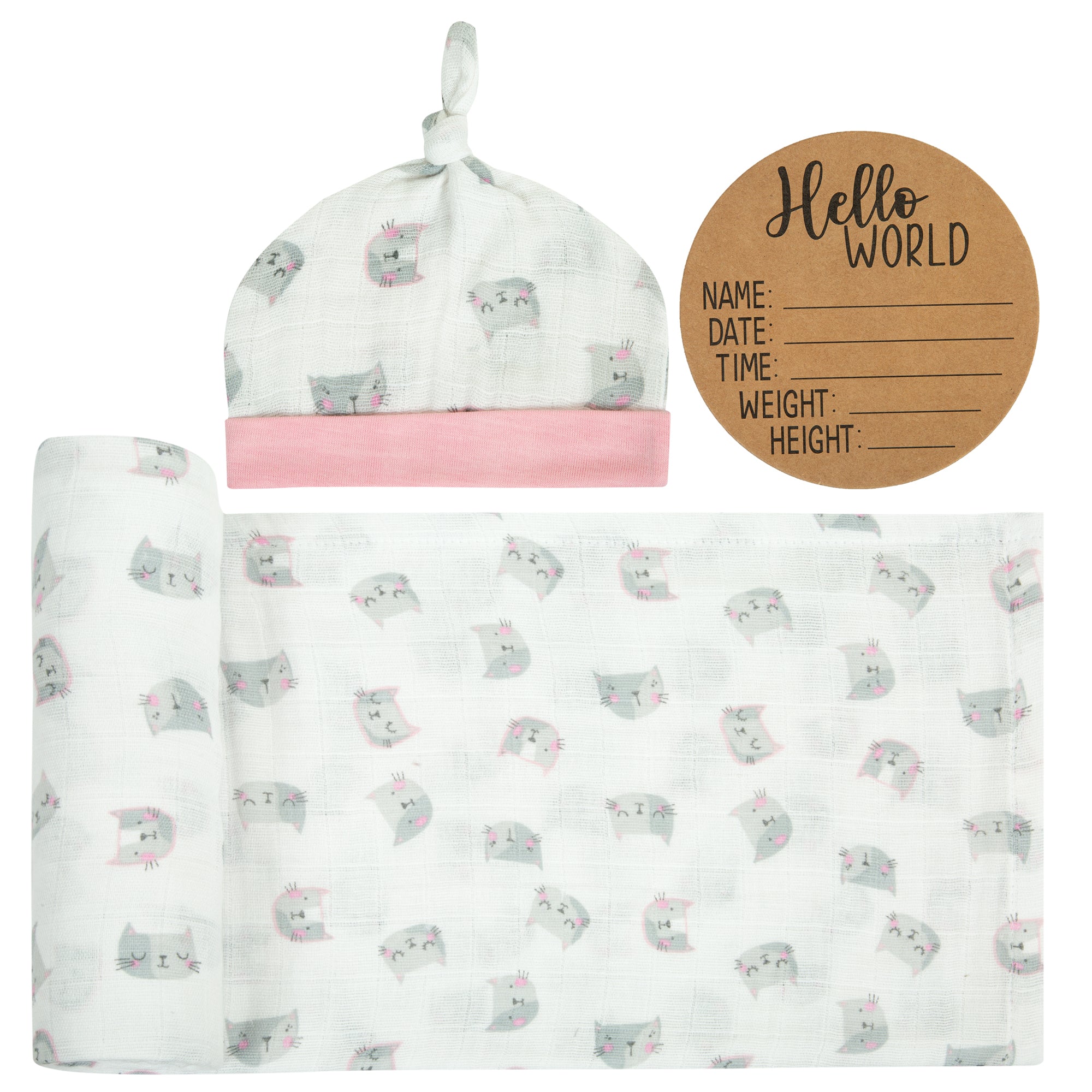 BABY BIRTH ANNOUNCEMENT SWADDLE SET - Kittie
