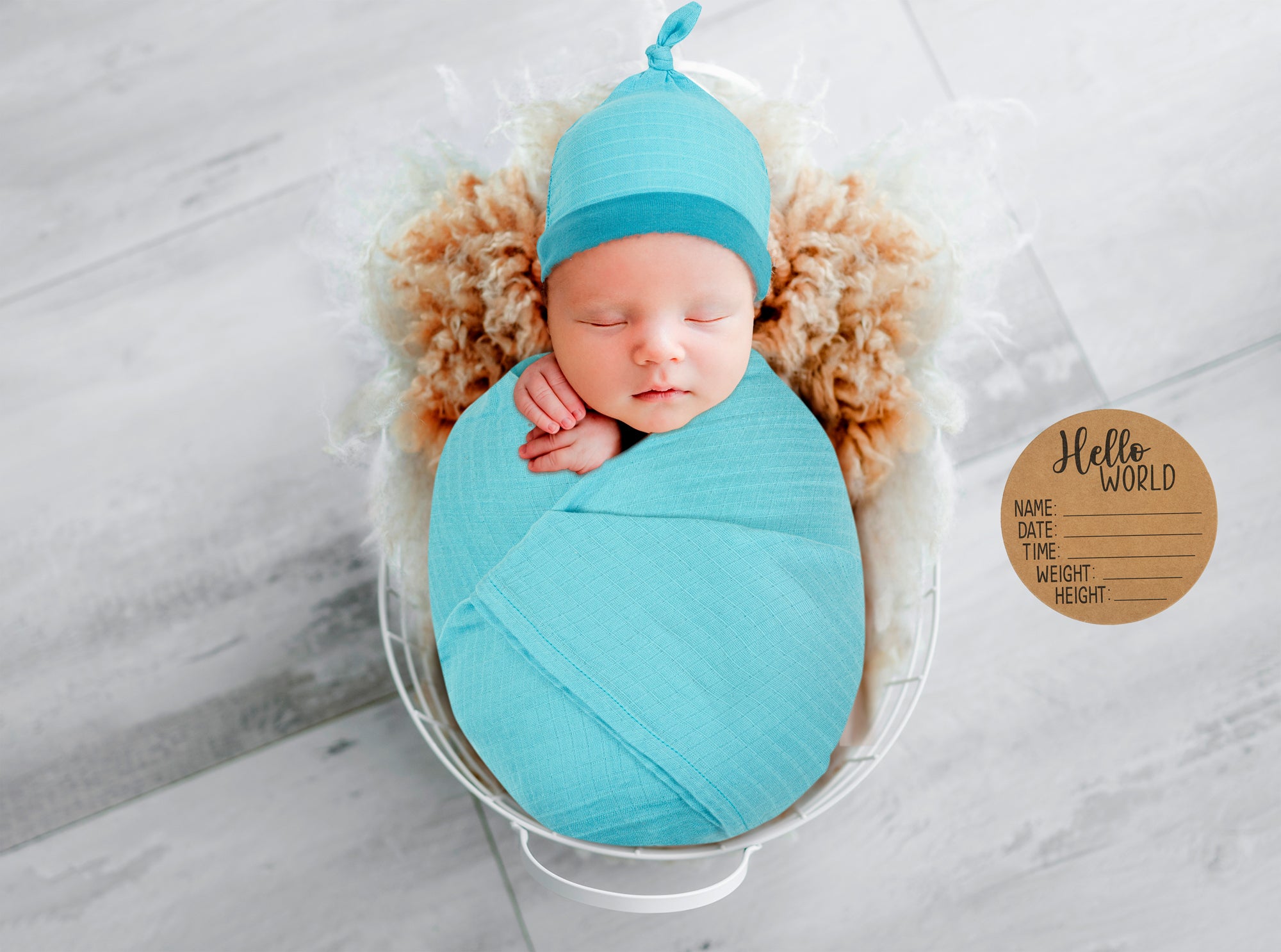 BABY BIRTH ANNOUNCEMENT SWADDLE SET - Ocean