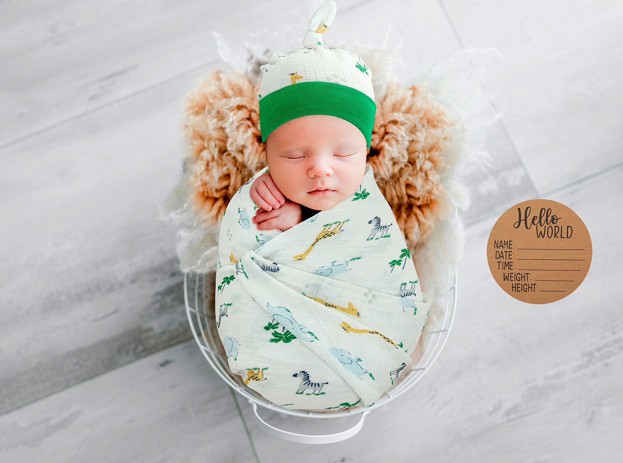 BABY BIRTH ANNOUNCEMENT SWADDLE SET - Safari