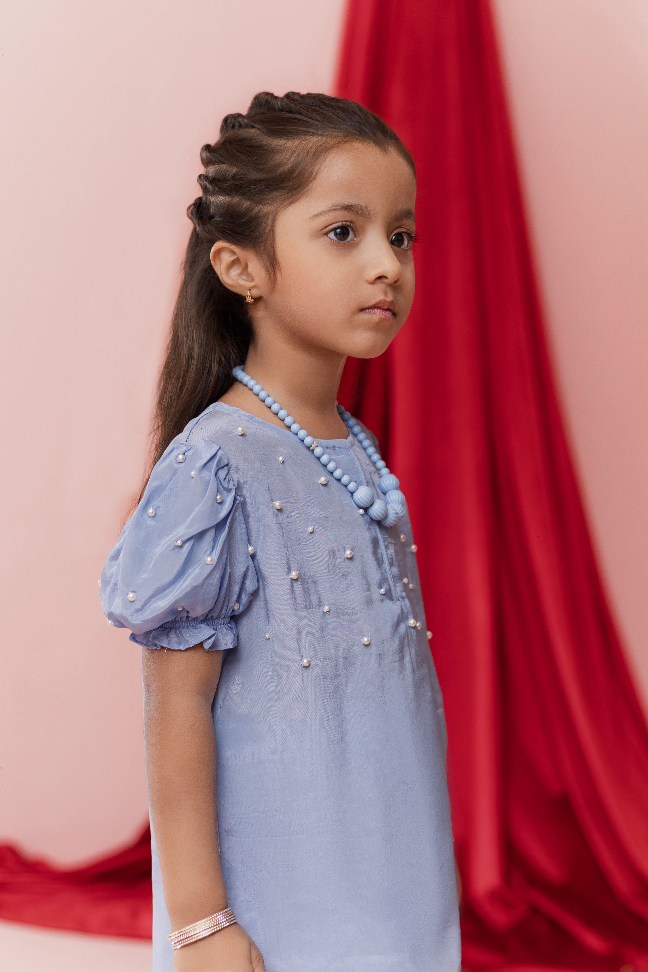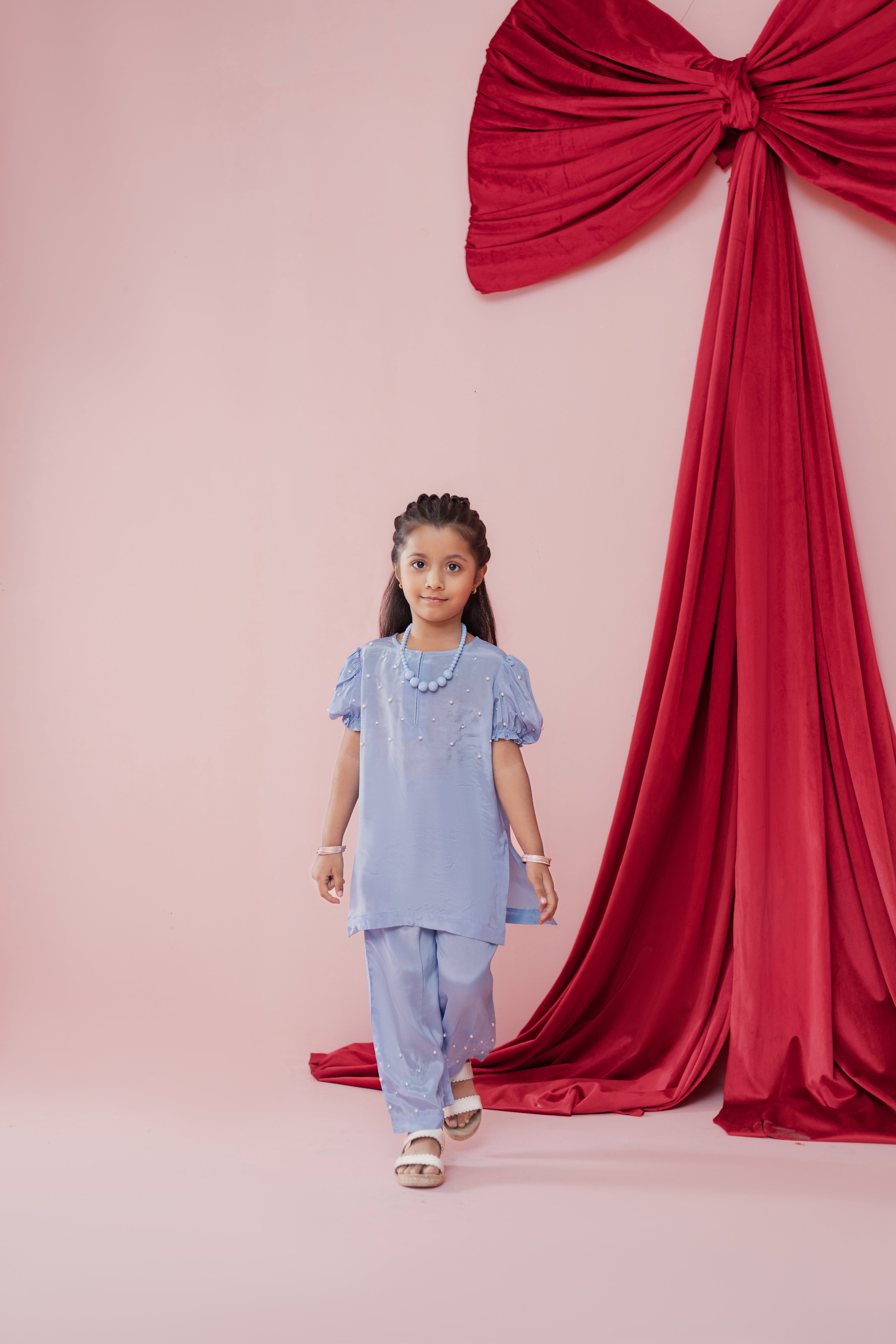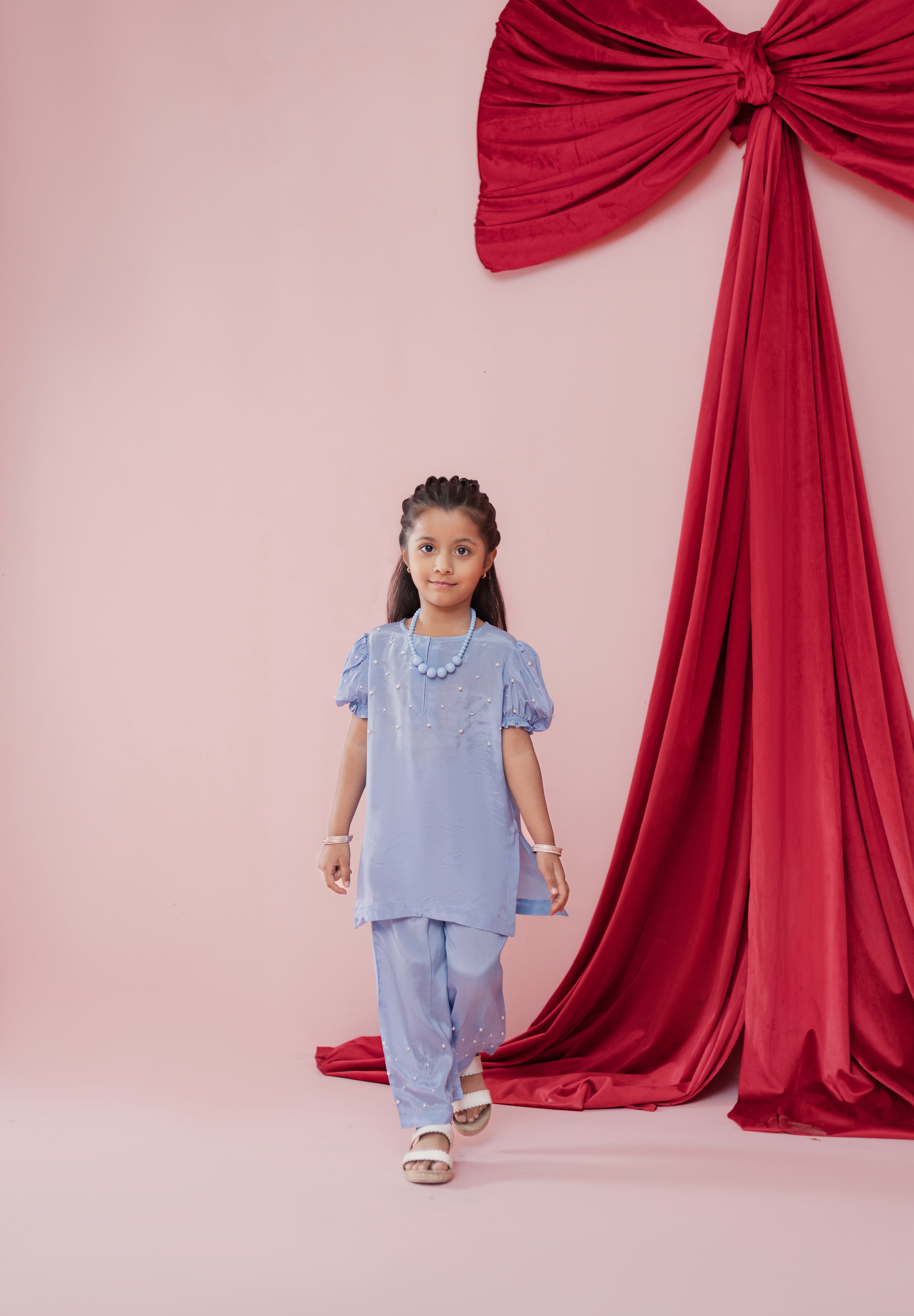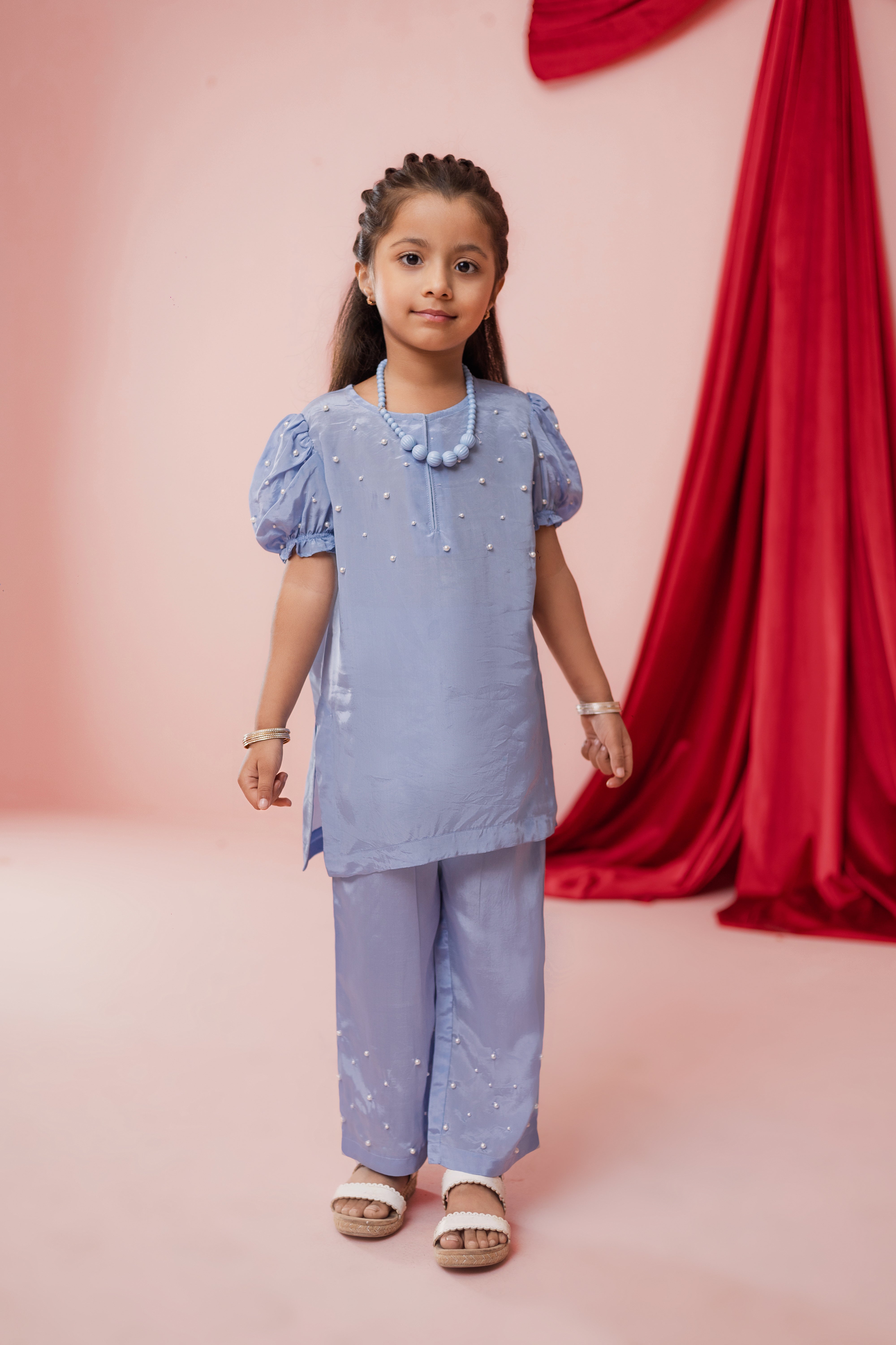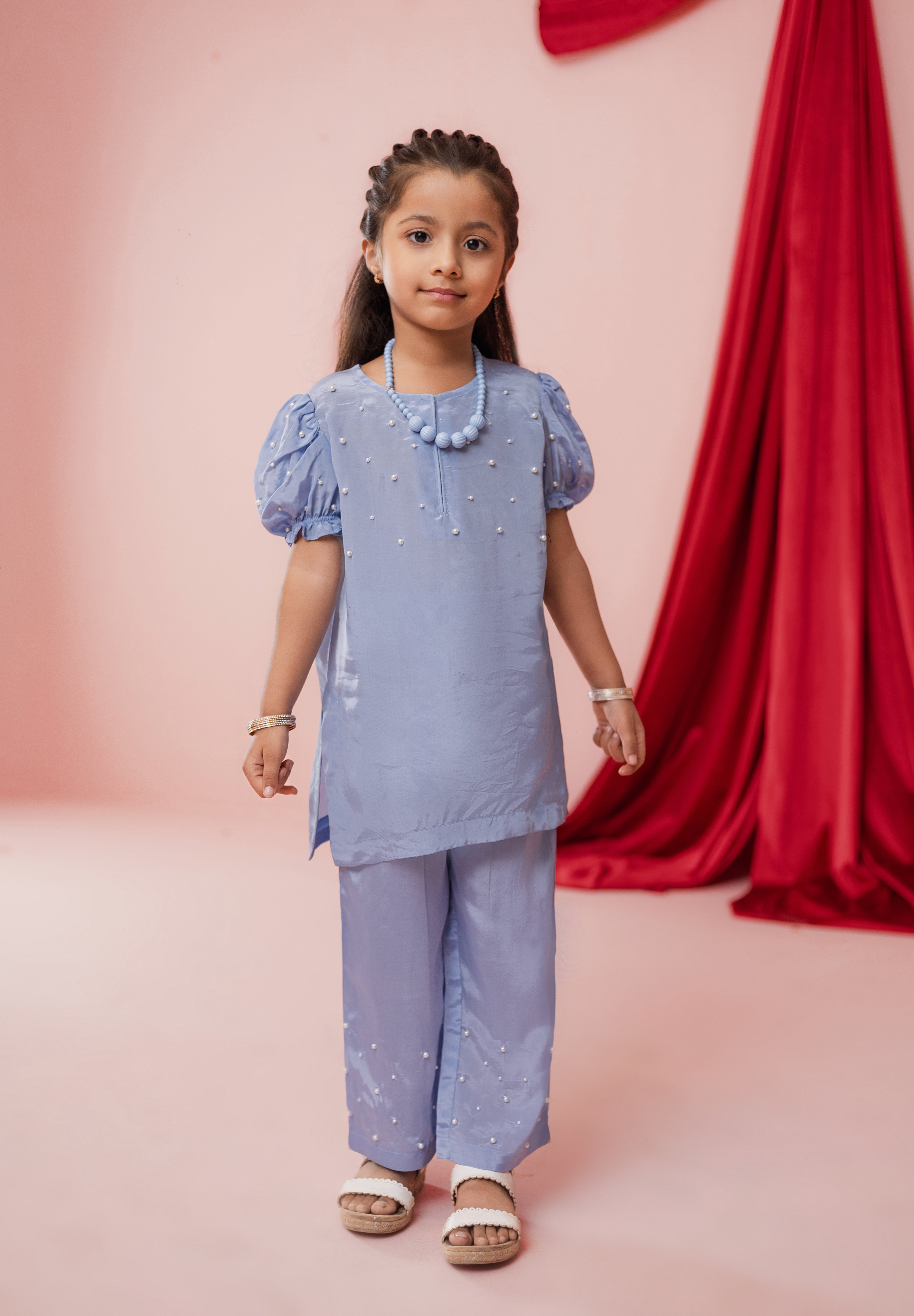Soft as the summer sky and effortlessly elegant, Aasmani is designed for little girls who shine in subtle sophistication.