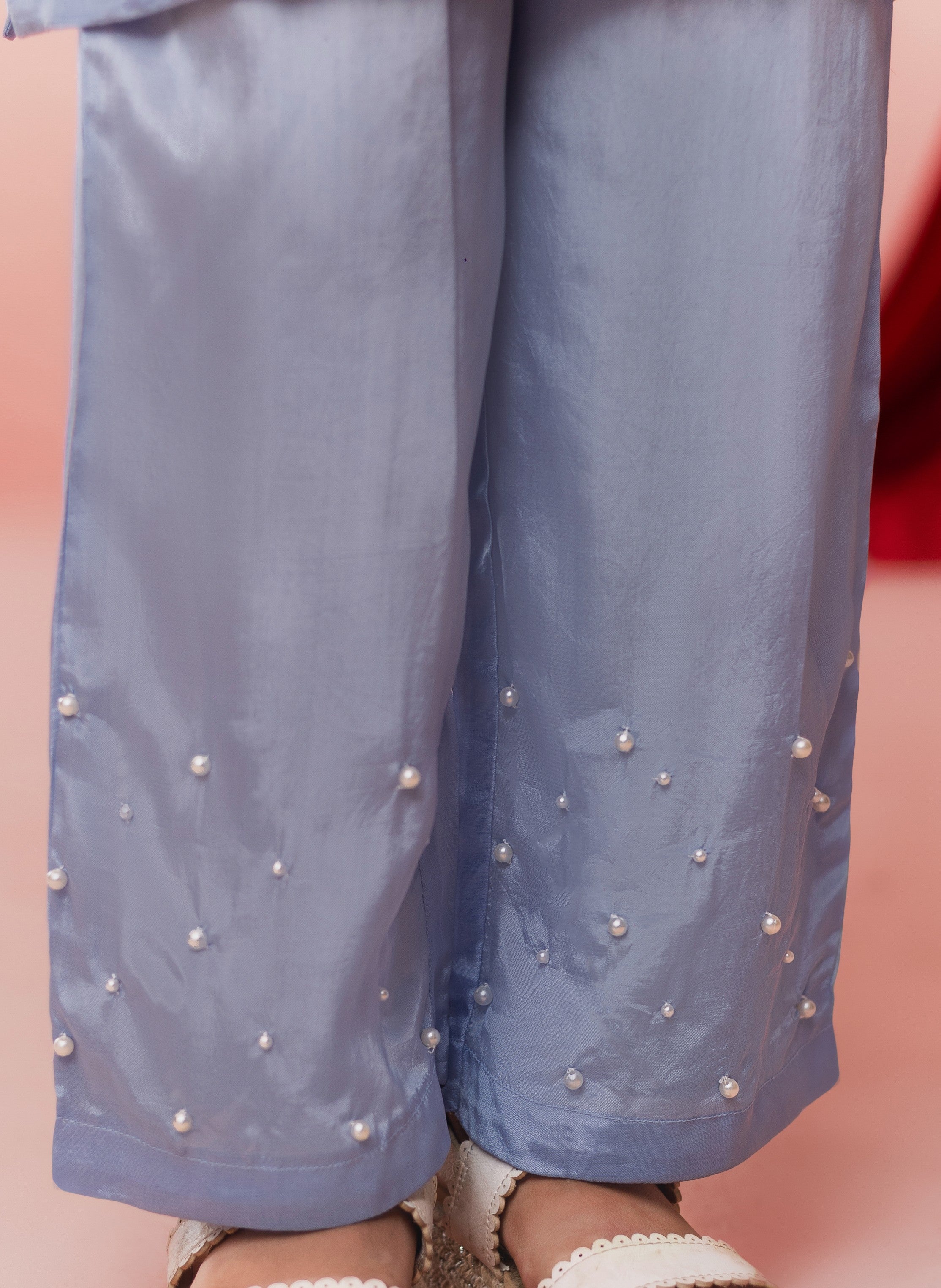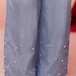 ✨ Matching silk trousers with pearl accents