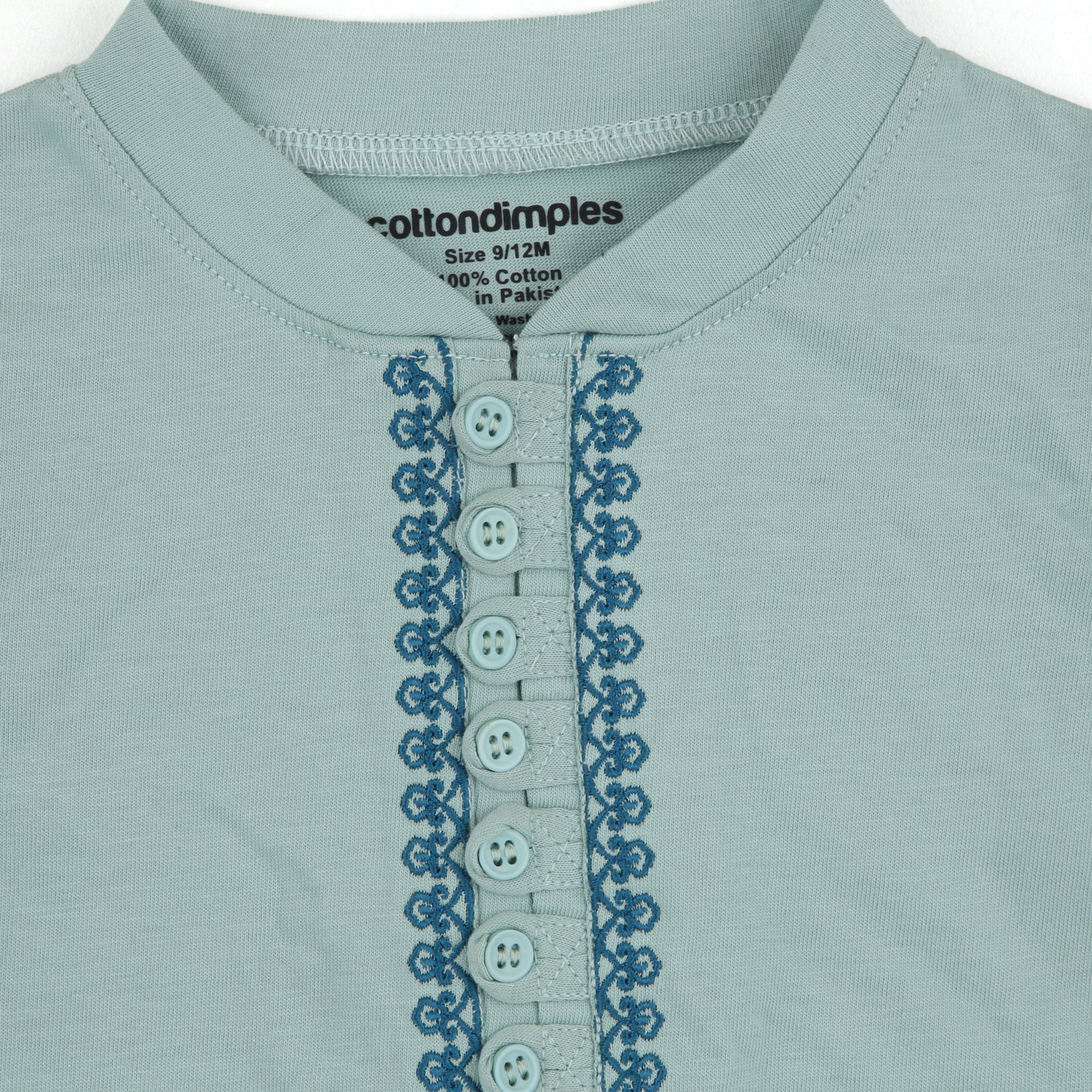 Design Details: Intricately embroidered placket, snap button closure, full sleeves, easy-to-wear neckline