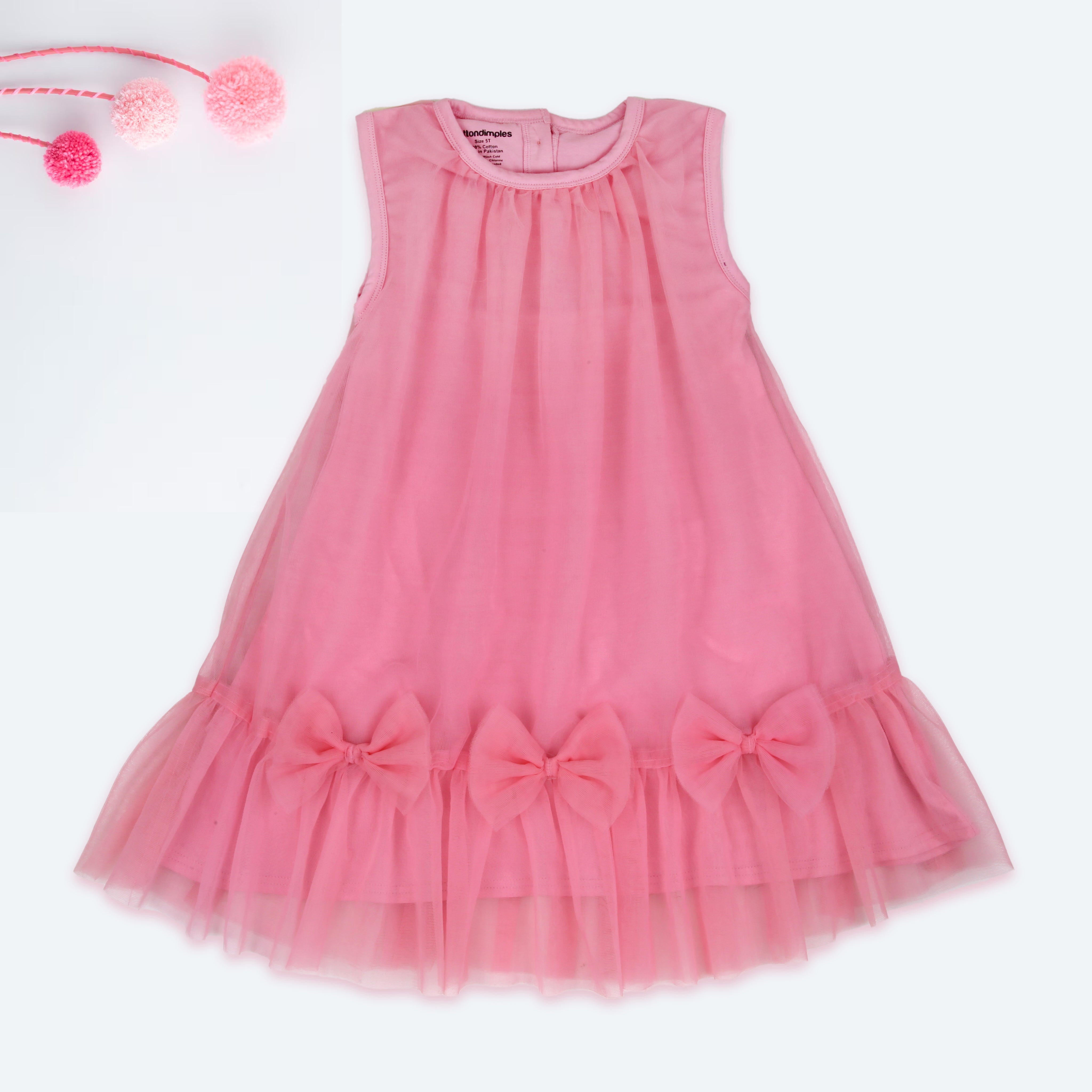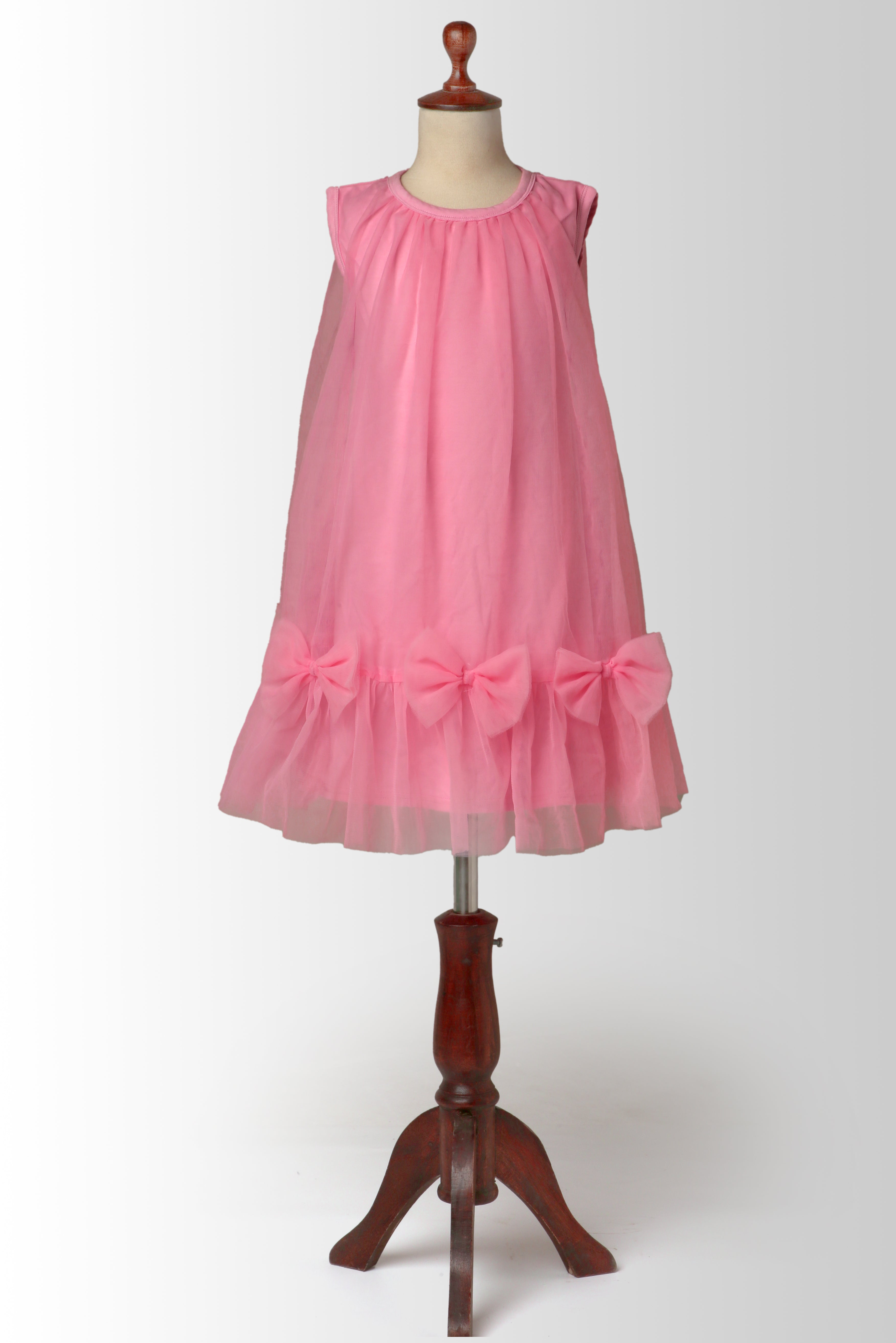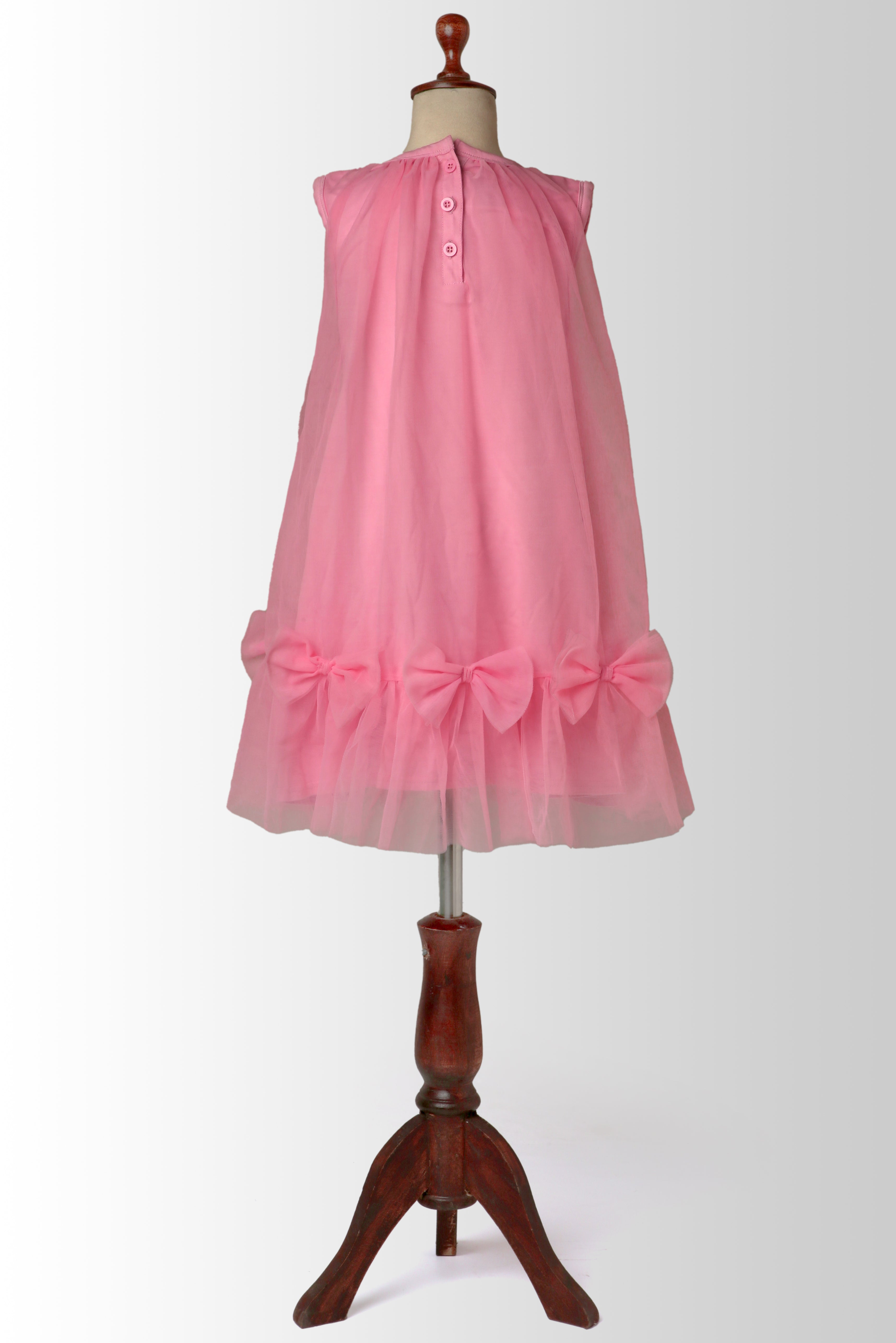 Delicate, dreamy, and designed for twirls! Our Tulle Bow Frock is a charming pick for birthdays, festive gatherings, or simply playing dress-up. Crafted from ultra-soft tulle, this airy sleeveless frock features three statement bows along the hemline and gentle pleating at the neckline for a graceful flow.