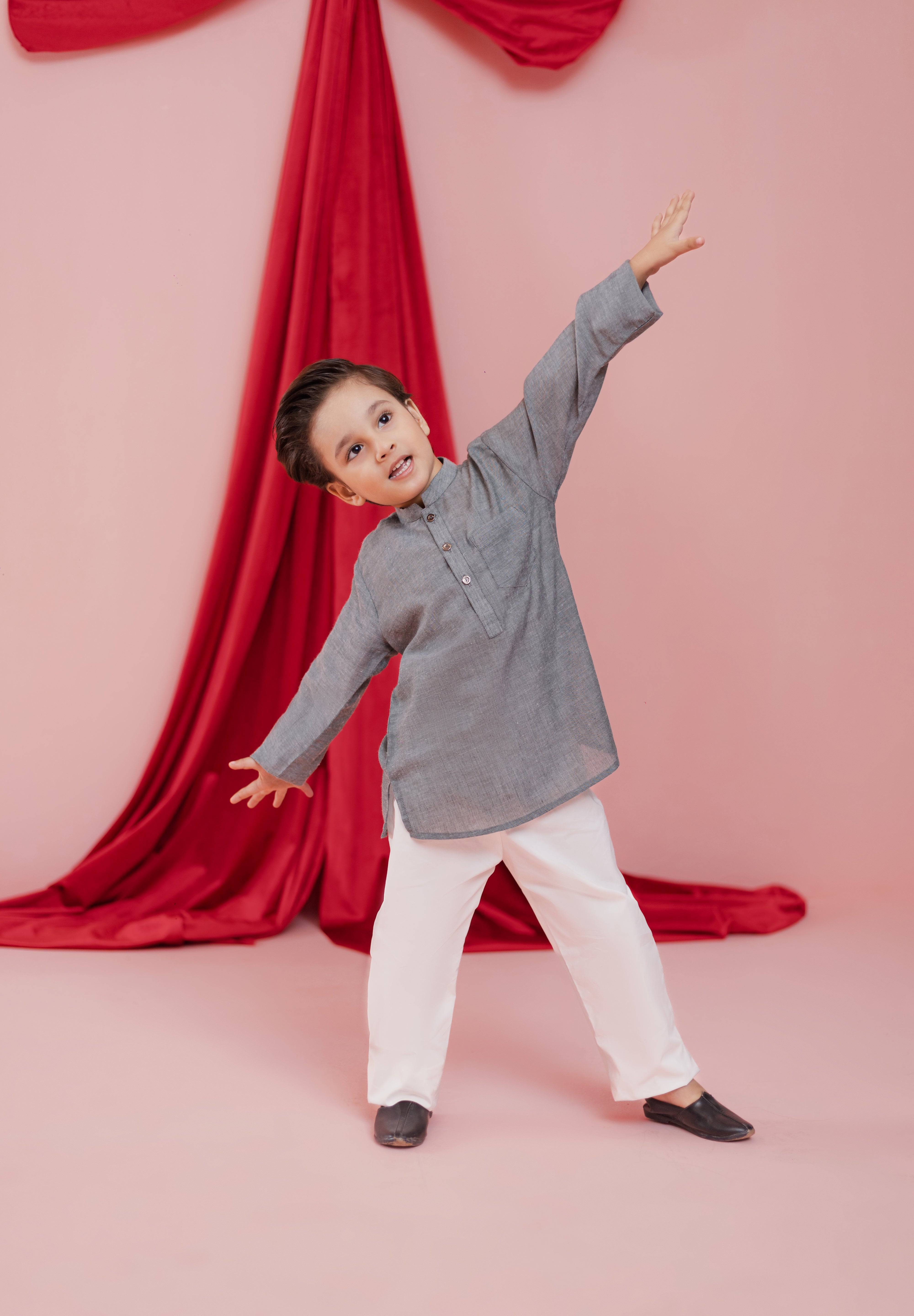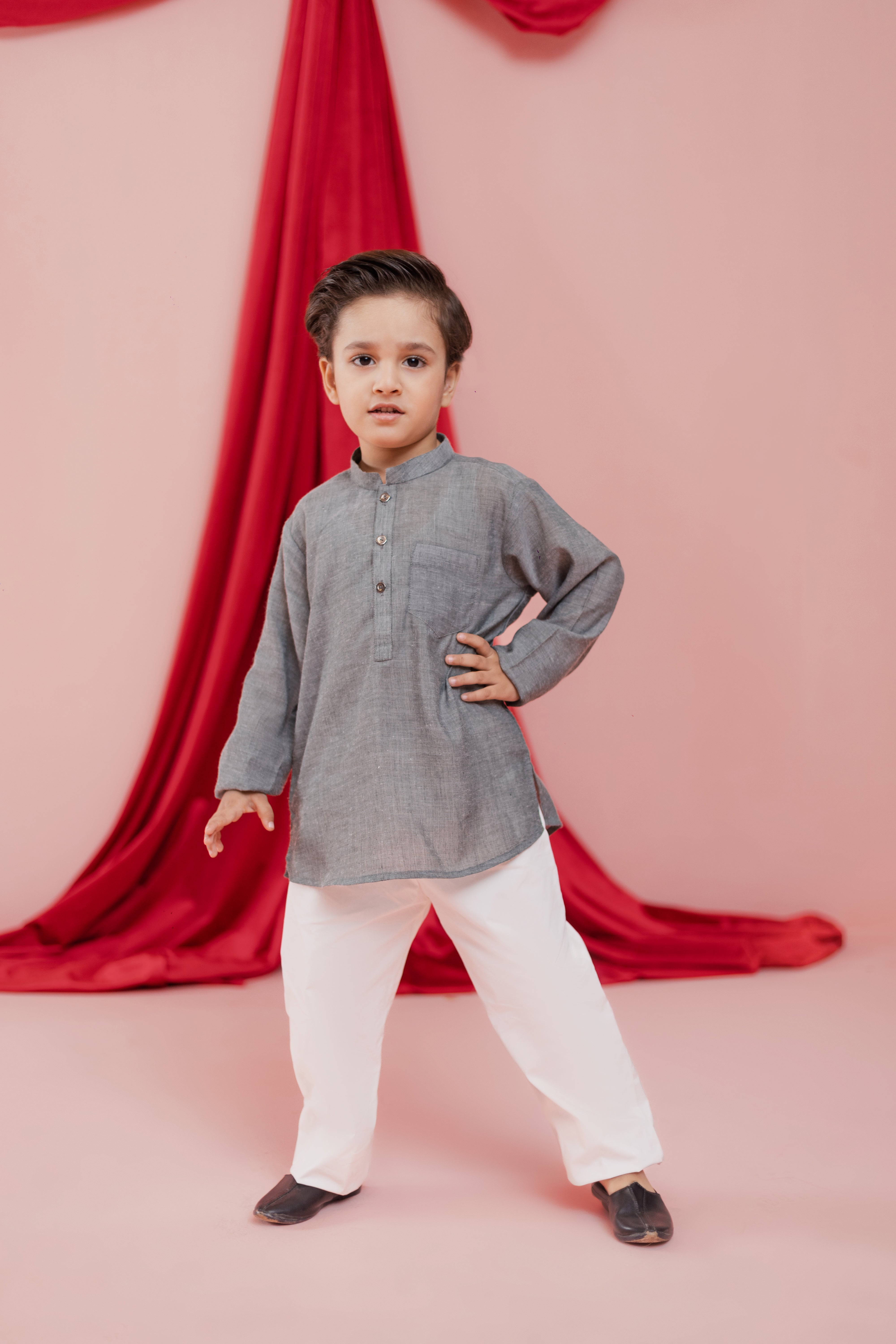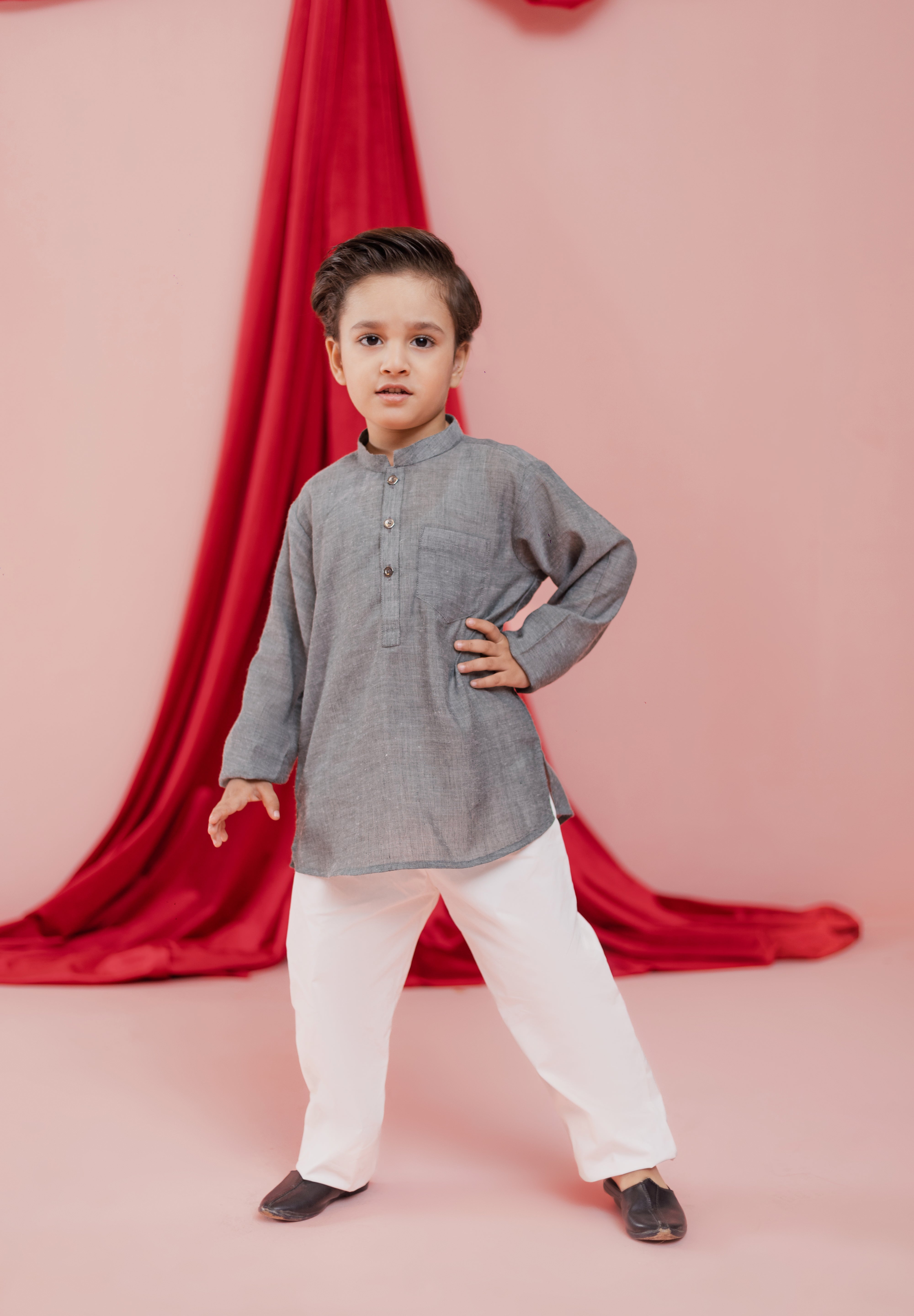 The Clay Tunic Set is a refined everyday festive essential designed for the modern little gentleman. Crafted in a lightweight, breathable fabric, this soft clay-grey tunic pairs seamlessly with crisp white trousers for a clean and balanced look.