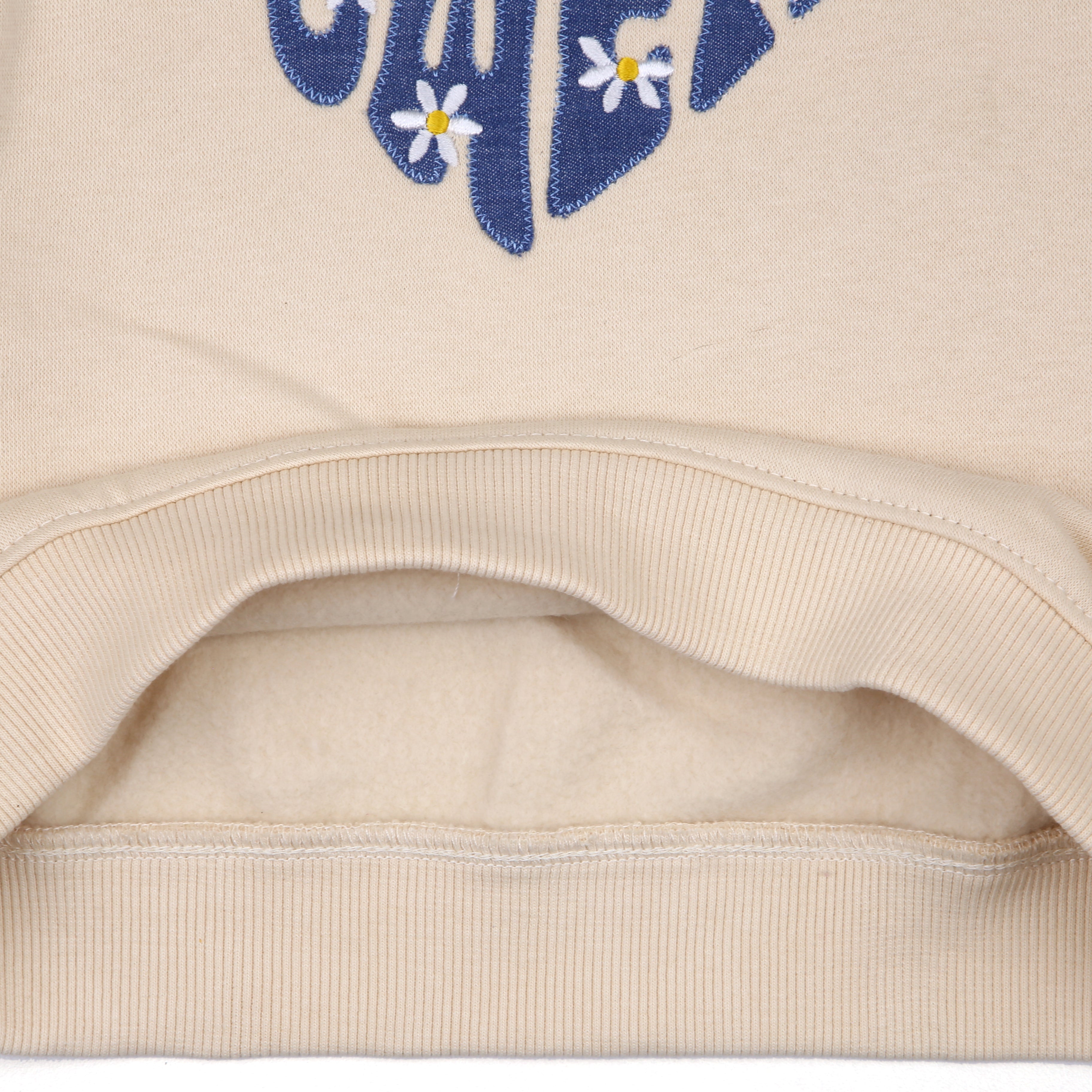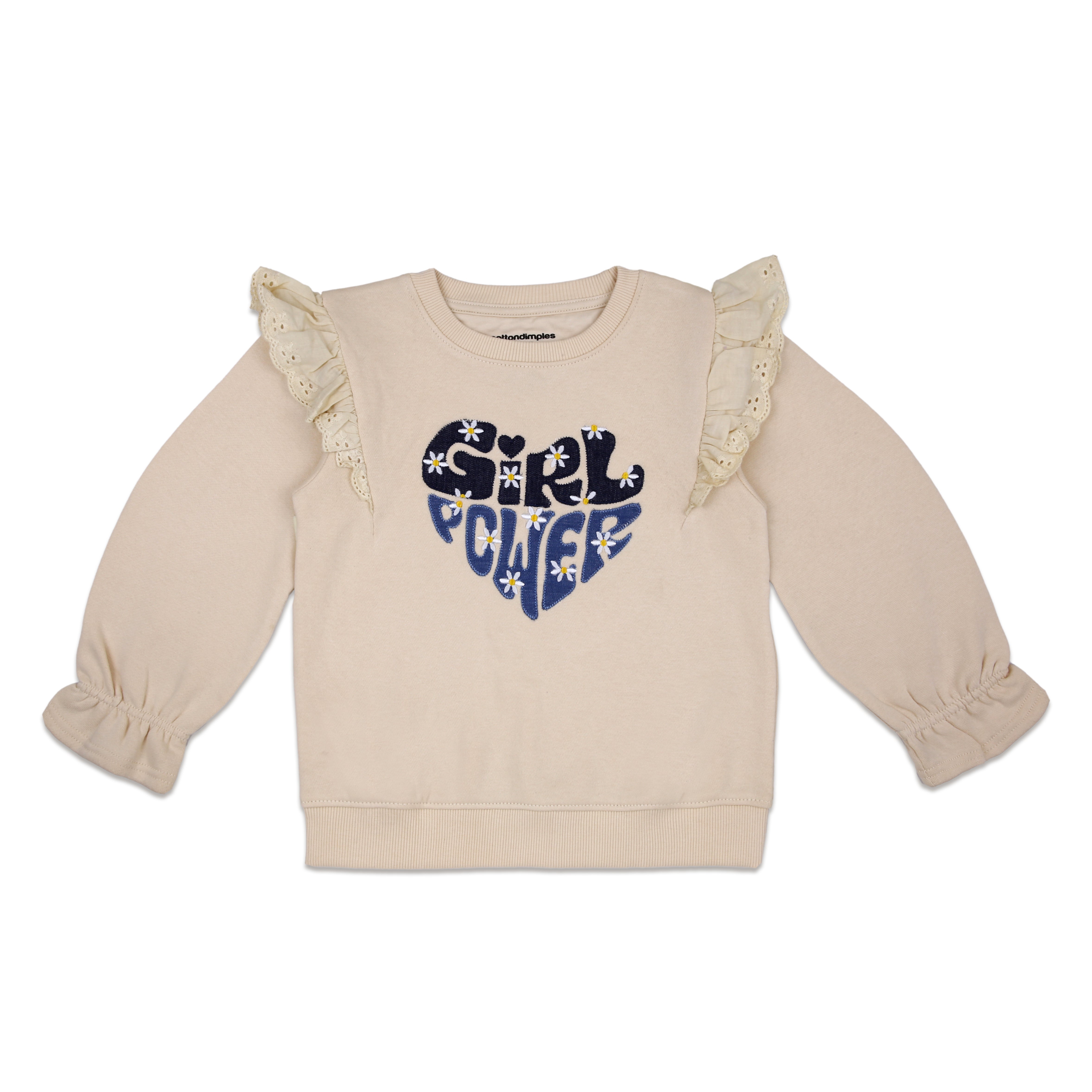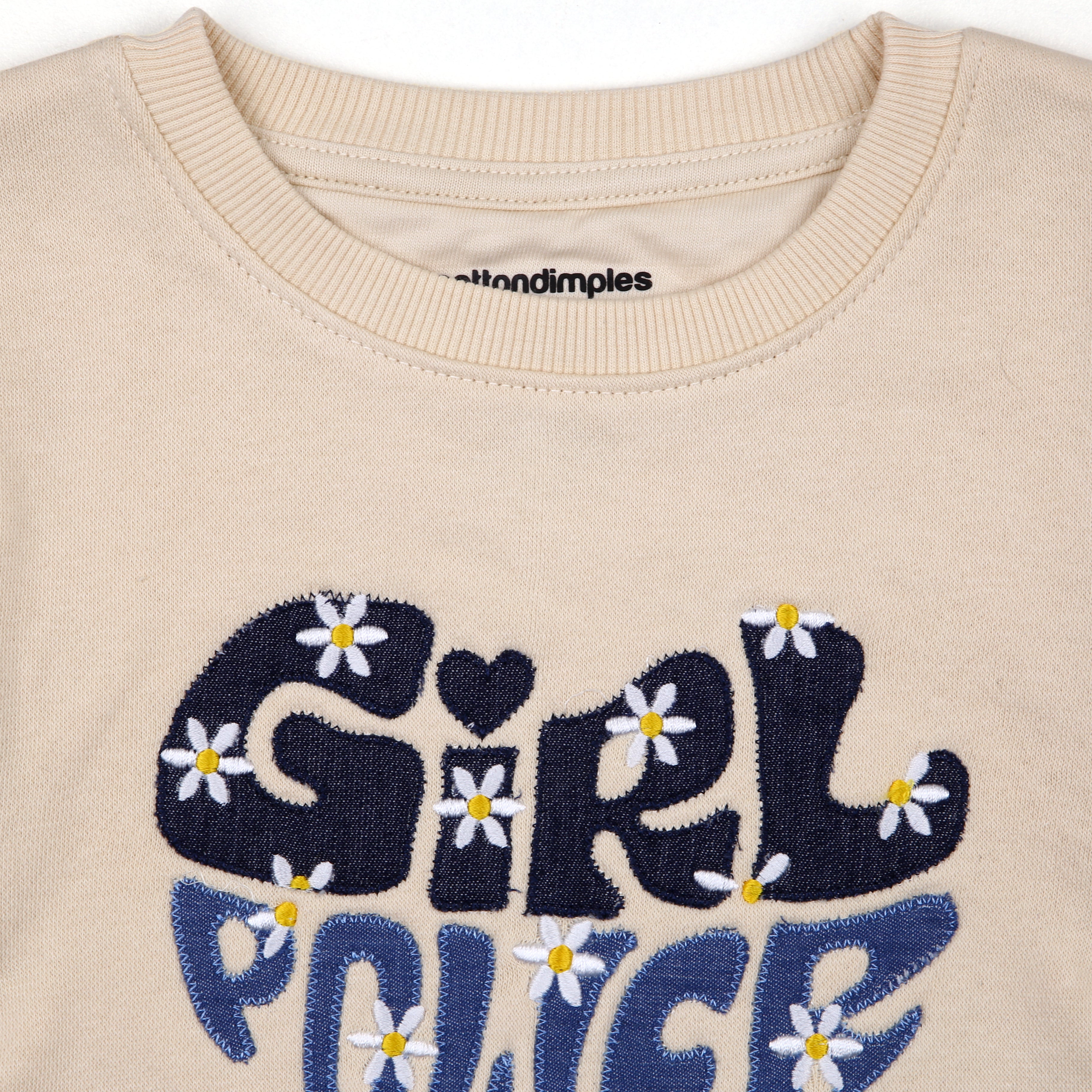 "GIRL POWER" heart appliqué with delicate floral embroidery for a bold and empowering look.