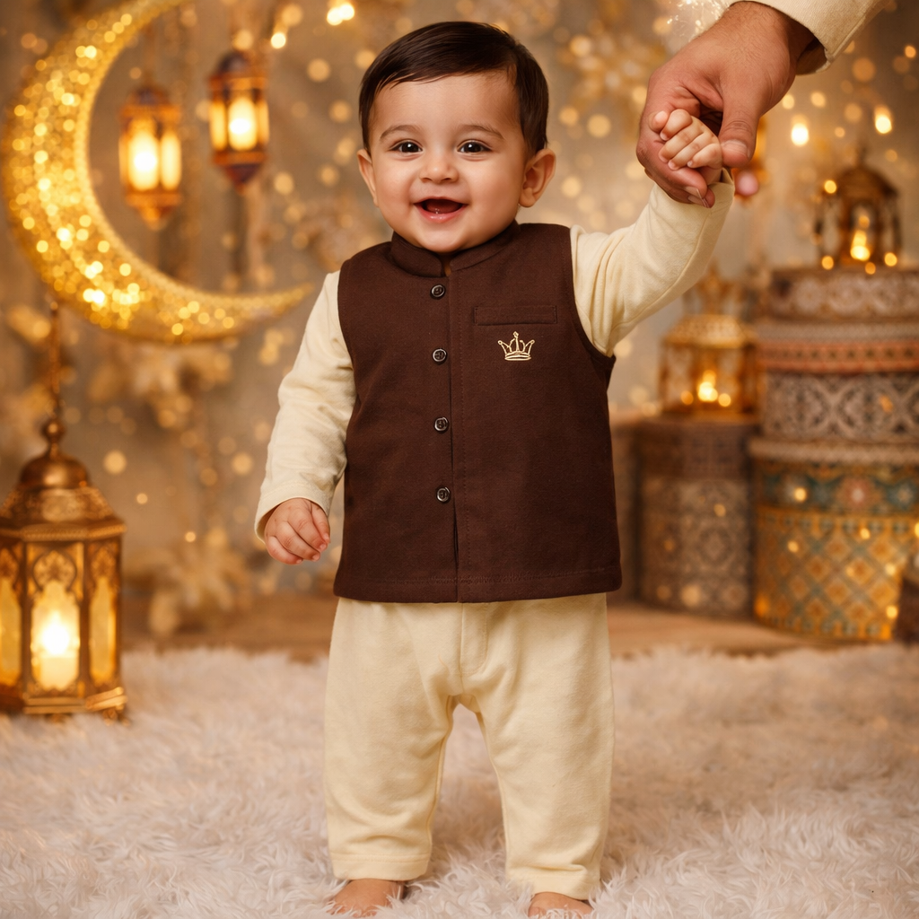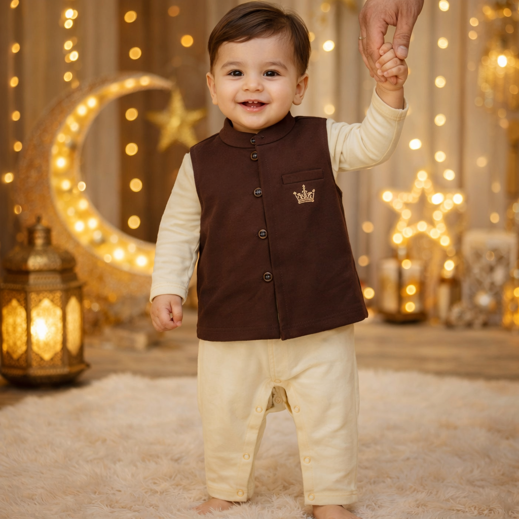 For the little one who deserves nothing short of royalty this Eid, our Humayun Romper Set is an effortless two-piece outfit that blends sophistication with softness. This premium festive set includes: