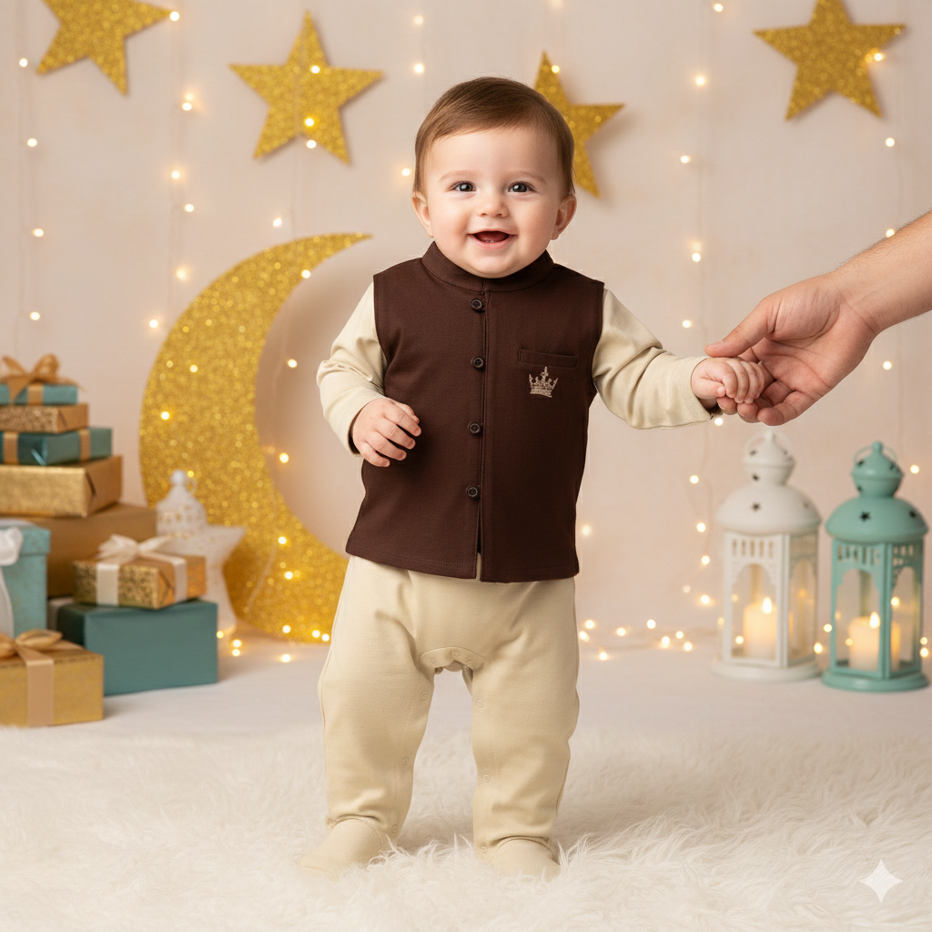 Designed for babies aged 0–18 months, this romper set makes for a picture-perfect Eid look — stylish, breathable, and gentle on baby skin.
