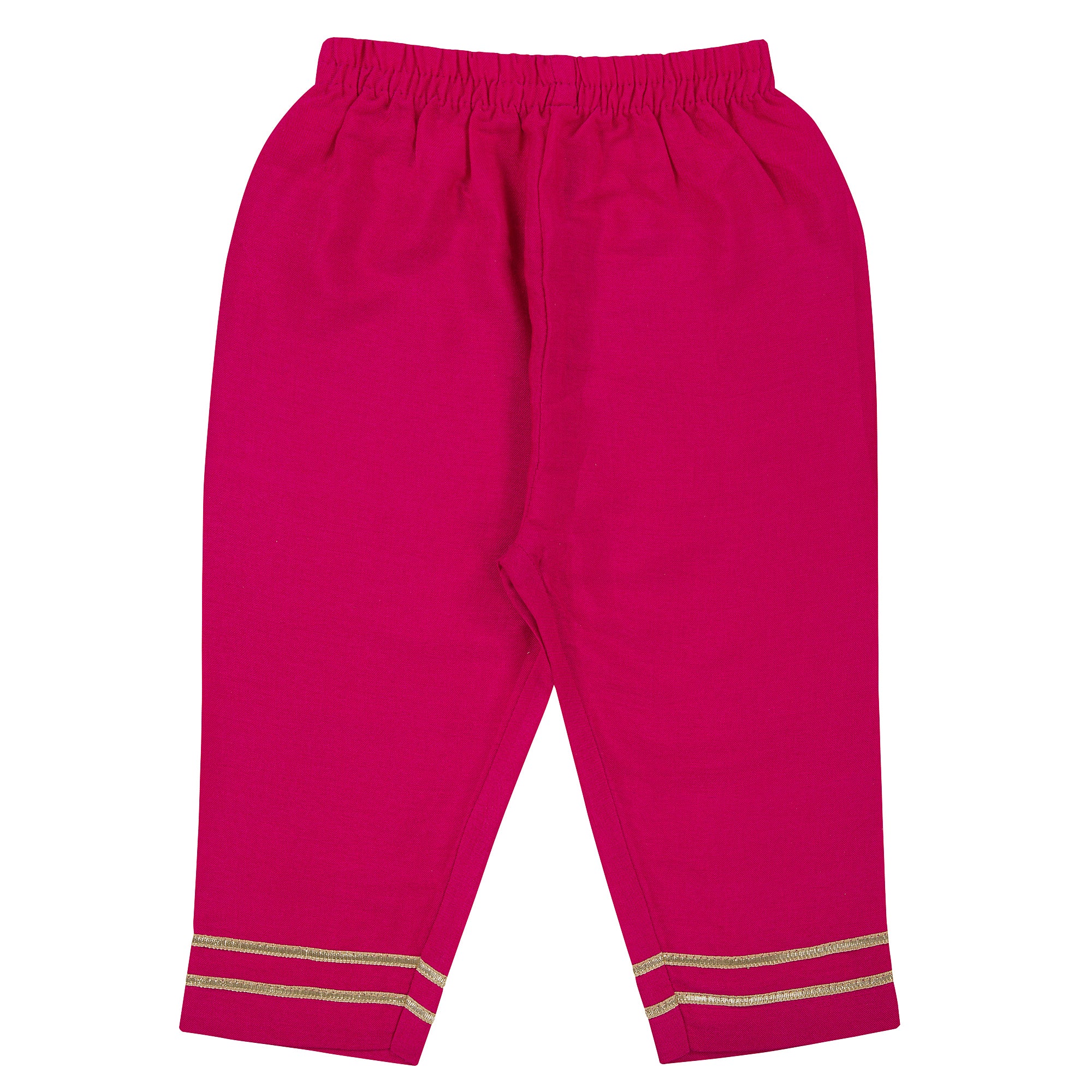 Enhance your wardrobe with our Round Neck Frock, detailed with delicate Gotta laces. Comes with a beautifully embroidered jacket, featuring pleated sleeves and a pair of comfortable, elasticized waistband pants. Elevate your style with this elegant and versatile ensemble.