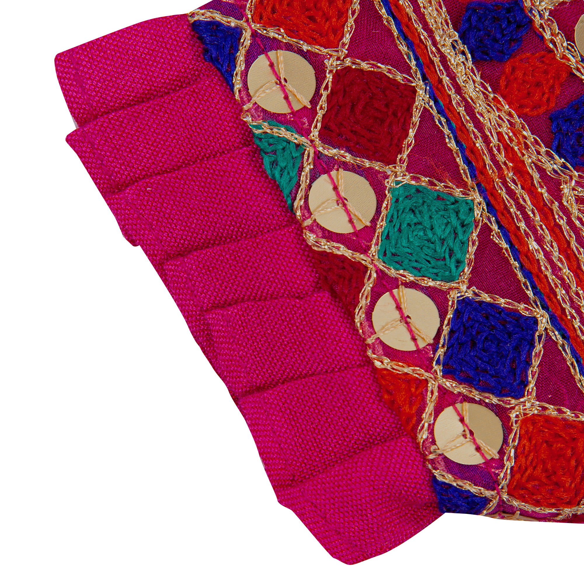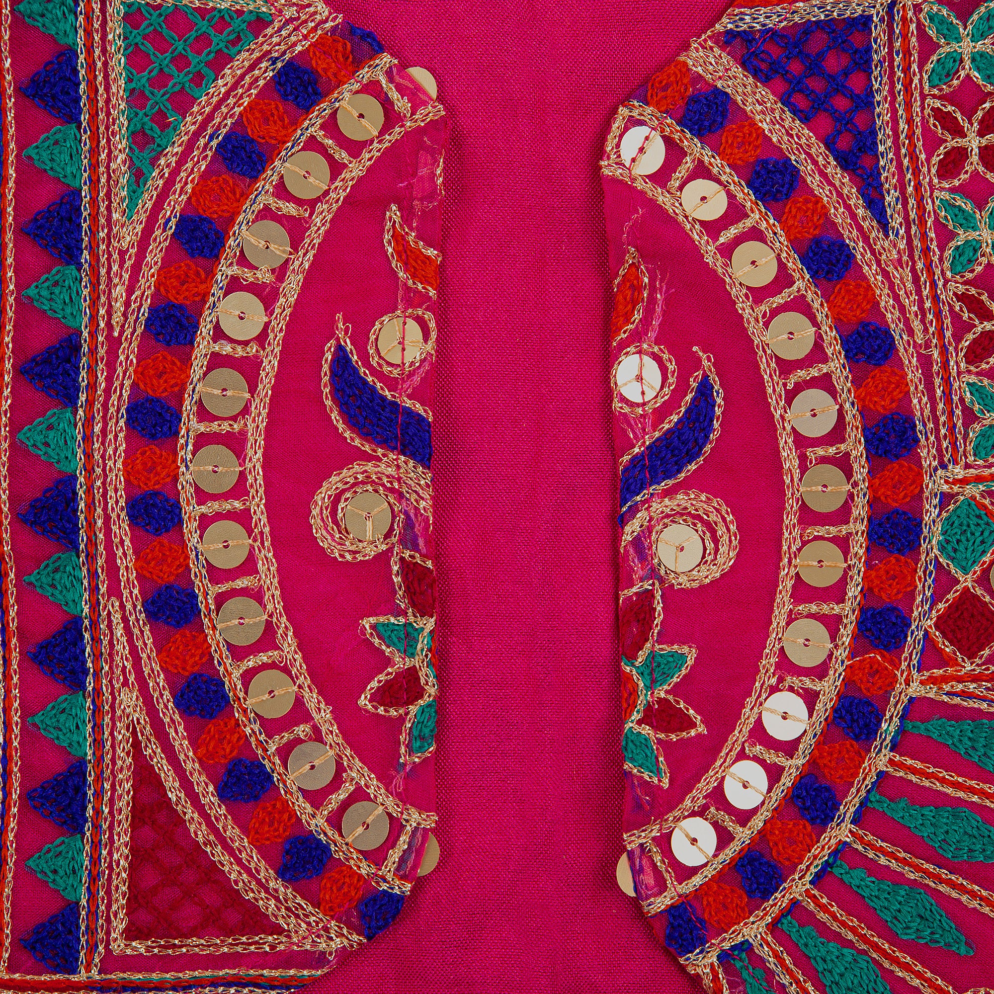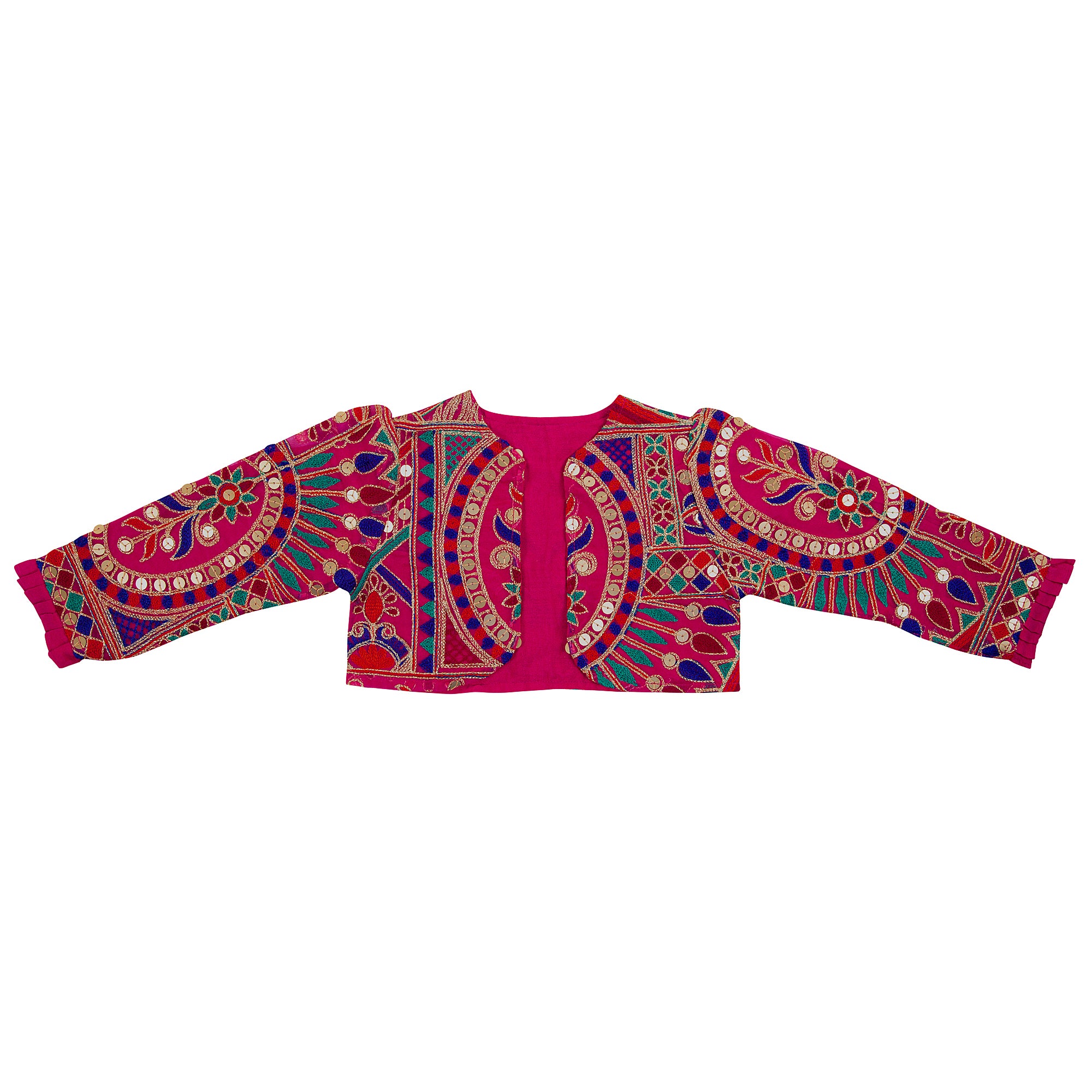 - Fabric: Cotton silk for frock and bottom, sequined and thread embroidered jacket which is lined for comfort