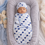 Snuggle up your newborn to 3 months old in comfort and cuteness with our Velcro Swaddle Set—designed for dreamy naps and cozy cuddles. Crafted for babies aged 0–3 months, this fuss-free swaddle wrap features an easy Velcro closure for quick, secure wrapping without the hassle. The soft cotton fabric is gentle on delicate newborn skin, while the adorable all-over cute print adds a sweet designer touch.