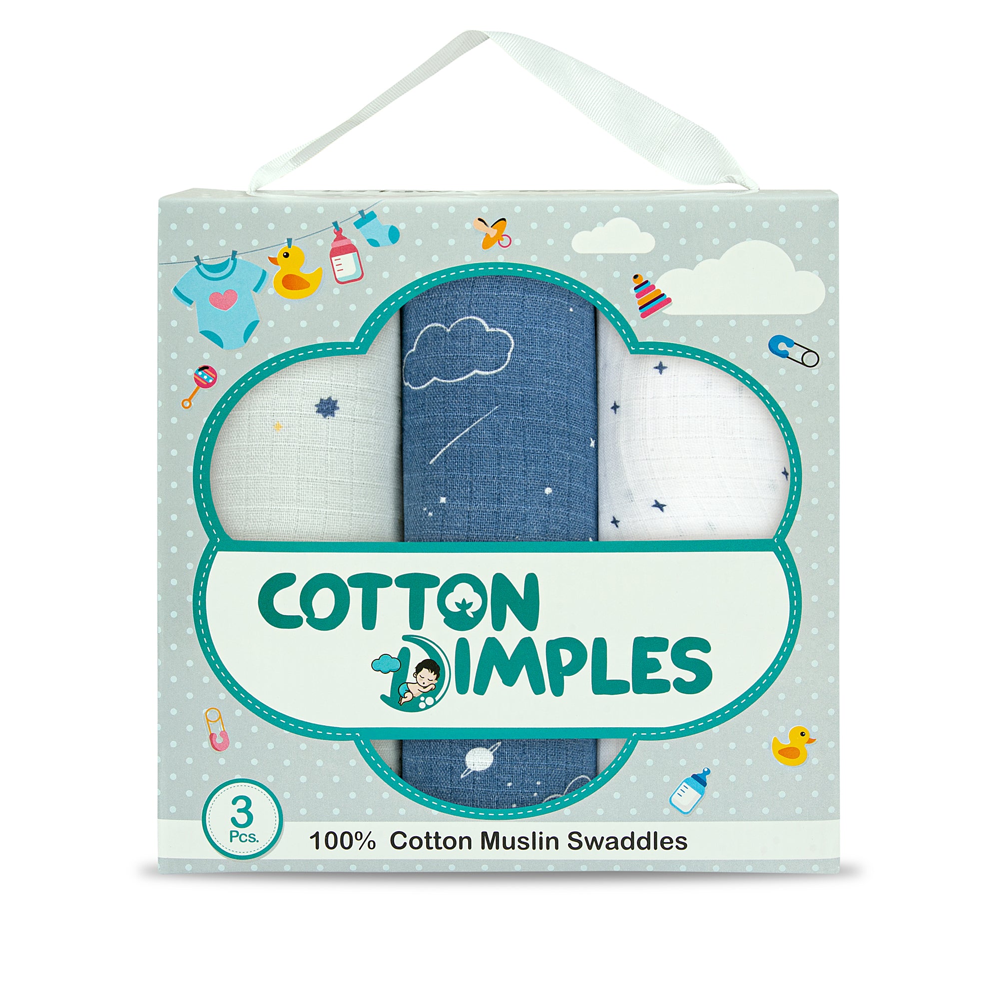- Pack contains: 3 Muslin Swaddle/ Wrapping sheets